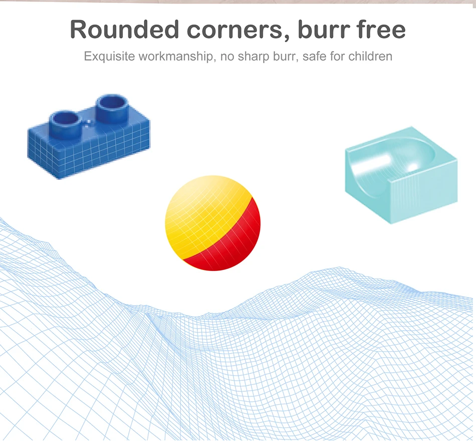 -Изготовлен из экологически чистого АБС-материала, который безопасен для детей. -Гладкая поверхность частиц, без заусенцев, не повредит кожу ребенка. -Свободное сочетание удивительных стилей, развивайте творческие способности и воображение вашего ребенка. -Родители могут строить блоки с детьми, что улучшит отношения родителей и детей. -Различные слайды, создают много удовольствия во время игры. -Можно использовать в качестве подарка на день рождения и праздничного подарка для детей.