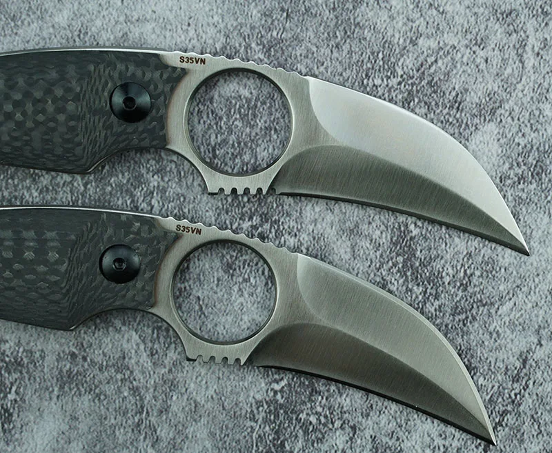 Материал лезвия: S35VN Полная длина: 135 мм Длина лезвия: 54 мм Толщина лезвия: 3 мм Ширина лезвия: 26 мм Твердость: 61 HRC Материал ручки: углеродное волокно Аксессуары: оболочка лезвия Kydex Вес: 71,2 г
