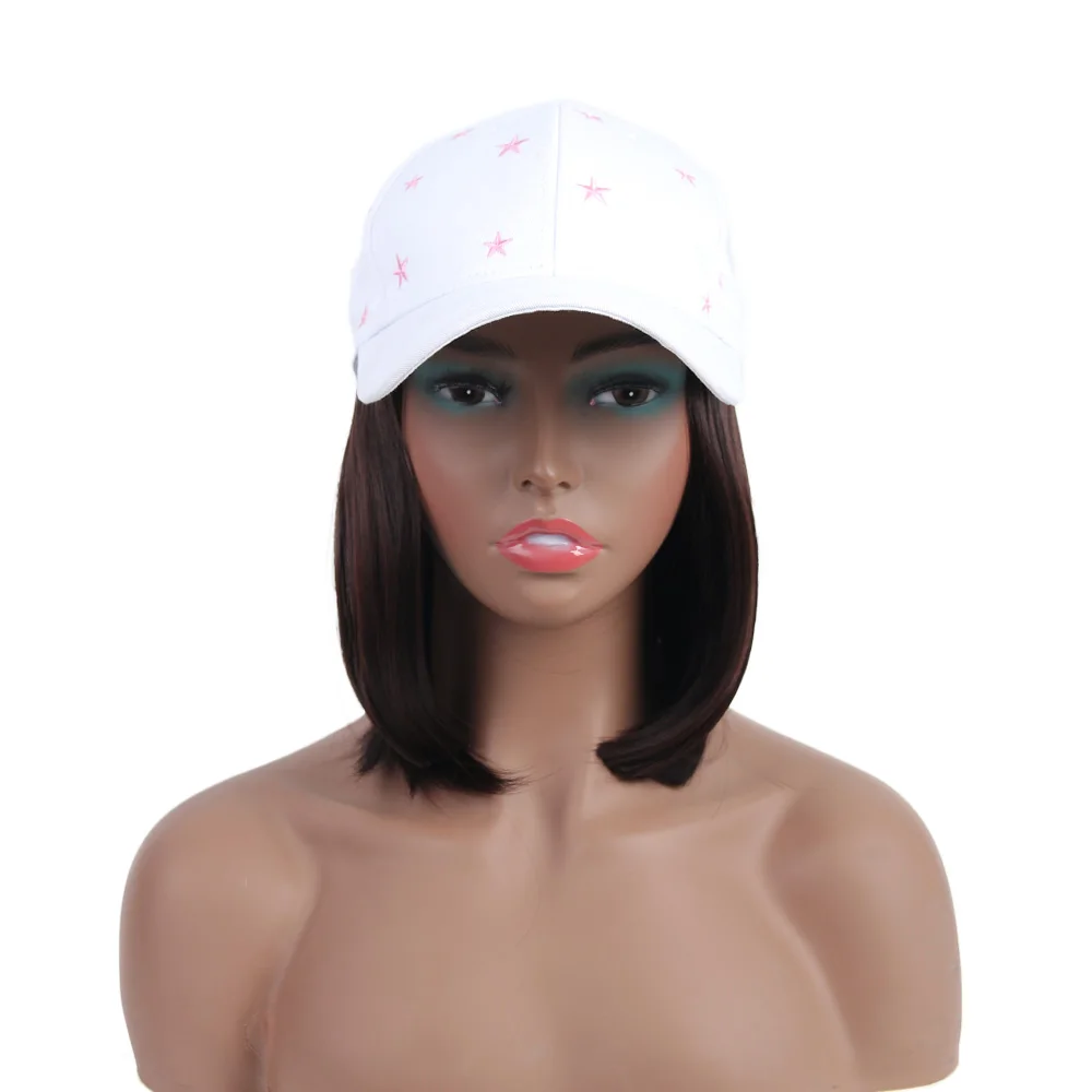 Современная королева прямой Боб бейсбольная кепка парик синтетический парик шапка волос женский термостойкие волокна короткий боб парик волос