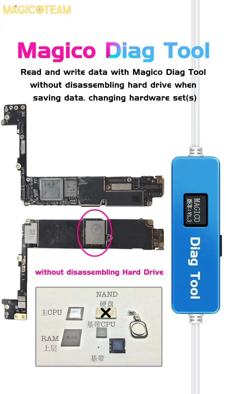 Magico Diag DFU инструмент для iphone ipad введите фиолетовый экран режим распаковки WiFi чтение данных изменение записи SN без NAND удаление