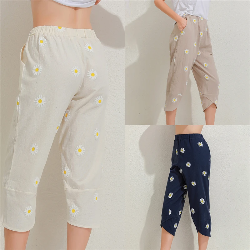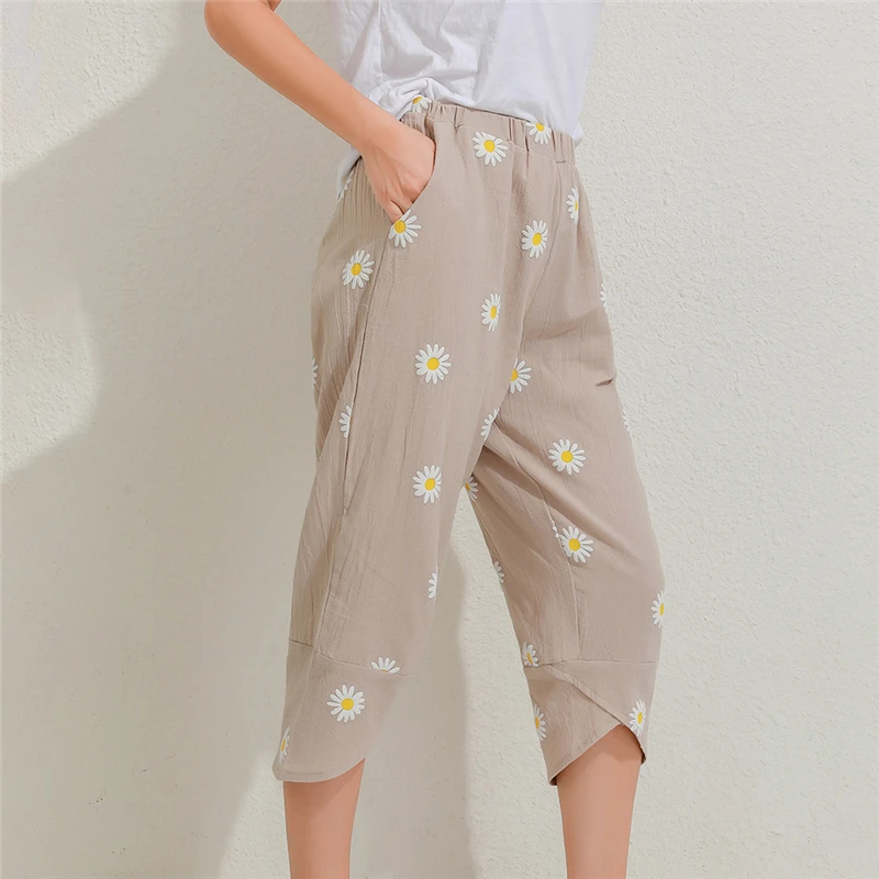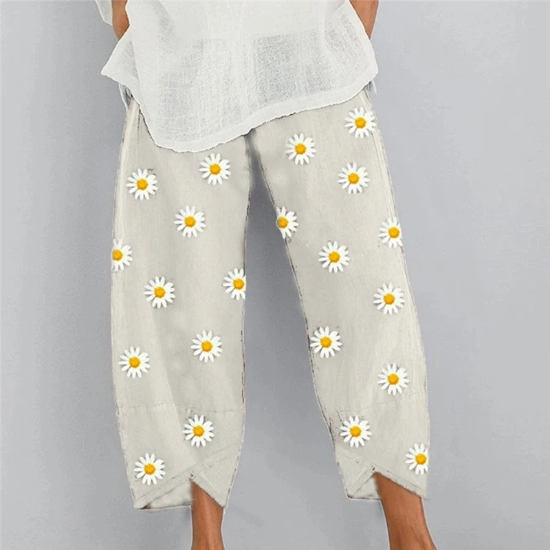 Женские повседневные шаровары, летние широкие брюки с эластичной резинкой на талии, винтажные брюки с цветочным принтом, женские свободные брюки размера плюс