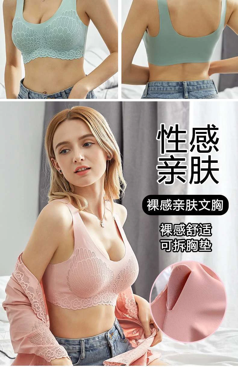 Бюстгальтер женский кружевной без косточек пикантный спортивный жилет пуш-ап на