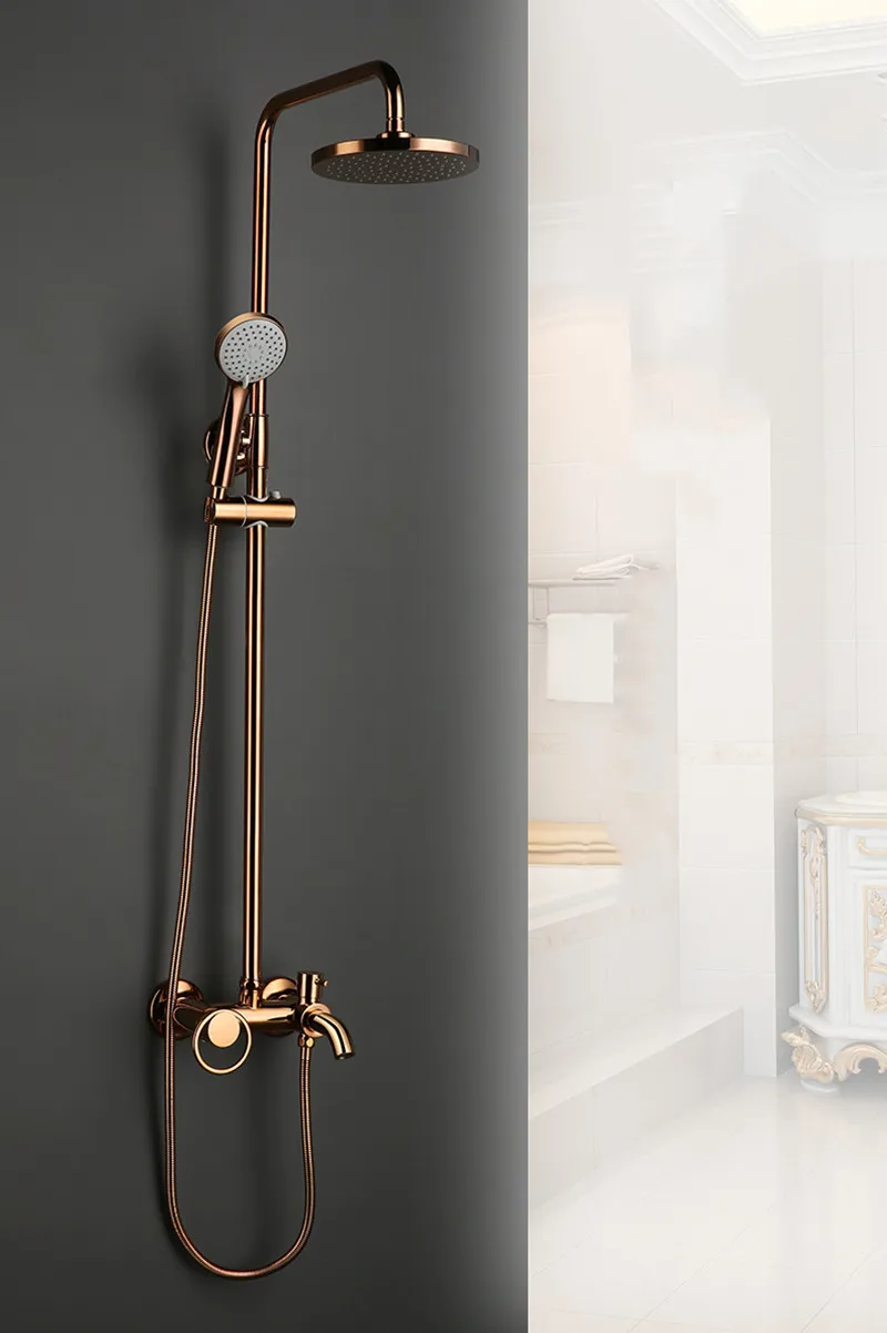 Набор для душа для ванной комнаты, матовый цвет розового золота, латунный смеситель для душа, приспособление для душа, круглая насадка для душа, потолок для душа