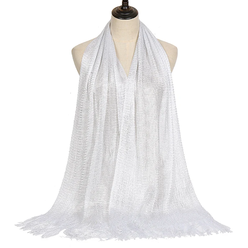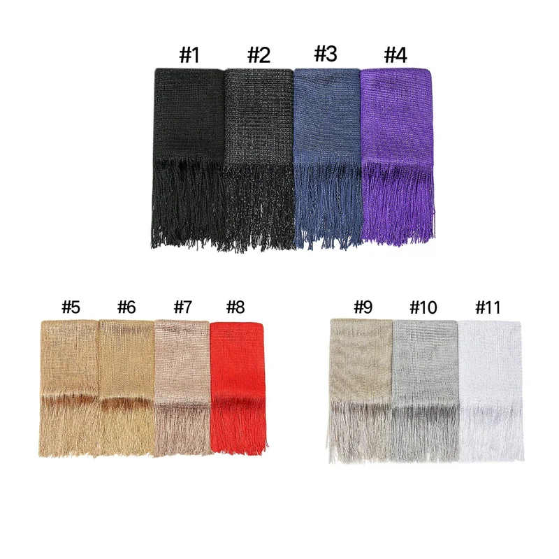 Блестящий полиэфирный шарф с люрексом, простая шаль с кисточками, Простые Длинные блестящие шарфы, мусульманский женский хиджаб, Женский праздничный головной убор, палантины