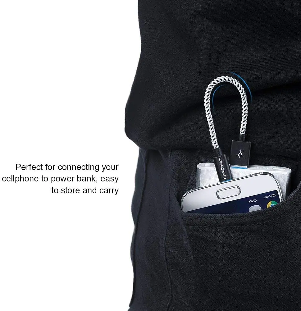 ❤【Короткий кабель легко переносим в сумку или карман. Прочный кабель с алюминиевой Чехол и черный + белый цвет Хлопчатобумажная Куртка, тройной экранированный провод (экранированная витая пара, квасцы-майлара, плюс 100% без Оловянно-медная оплетка Экранирование) обеспечивает без потери данных во время передачи данных. **** Внимание! Не подходит для устройств Apple Lightning USB и USB Type C ****