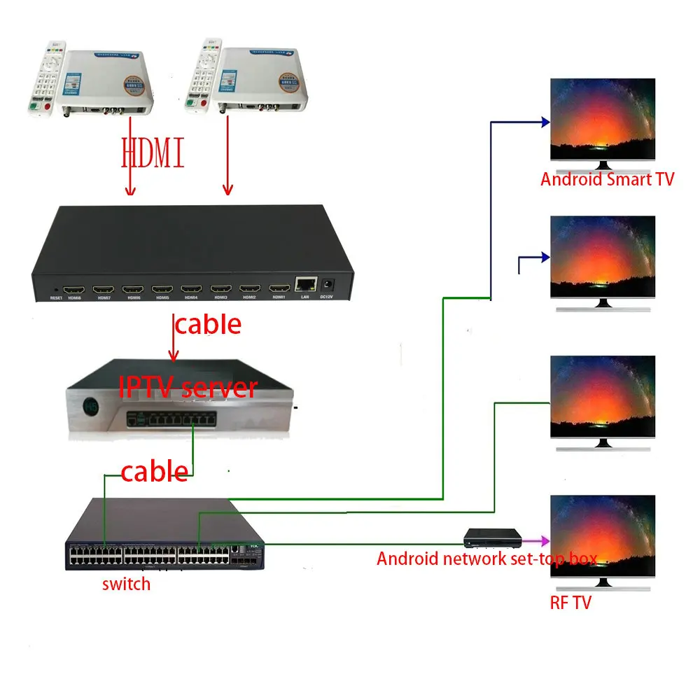 NOTE Our prices include products and shipping costs, but do not include local customs clearance fees. If you have special requirements for the declared value of the product, please leave a message and let us know. The company's K300 product is a set of IPTV network television systems developed for hotels, guesthouses, hospitals, factories, troops and other places. The supporting desktop apk interface can be customized and modified, including live broadcast, on-demand, venue introduction, advertising notification, forced insertion, mobile phone Screen-to-screen login function, which can be docked with the wine tube system to implement the welcome interface, boot video, ordering, shopping and other functions. This series of machines is suitable for use within 1500 terminals. The machine has a total of 10 Gigabit Ethernet ports and 2 10 Gigabit optical ports.