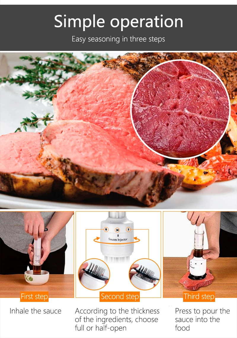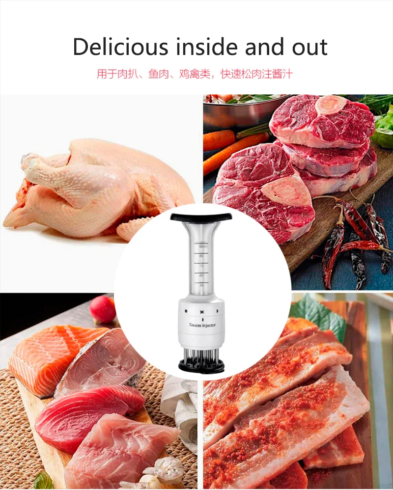 Нержавеющая сталь мясо маринад инжектор приправа барбекю инжекторы мясо тендеризатор Кухонные гаджеты барбекю инструменты для приготовления пищи Характеристика: 100% новый товар высокого качества. Закрытый тип очистки, чтобы предотвратить уборку мусора. В соответствии с принципом инженерии человеческого тела. Материал из нержавеющей стали, прочный. Неоспоримо для повседневной жизни, что может сократить время приготовления. Подходит для домашней кухни, отеля, ресторана и т. д. Спецификация: Размеры: 22,5*9*9 см Вес: 300 г Материал: АБС + нержавеющая сталь Цвет: белый Посылка включает в себя: Инжектор мяса 1 шт.