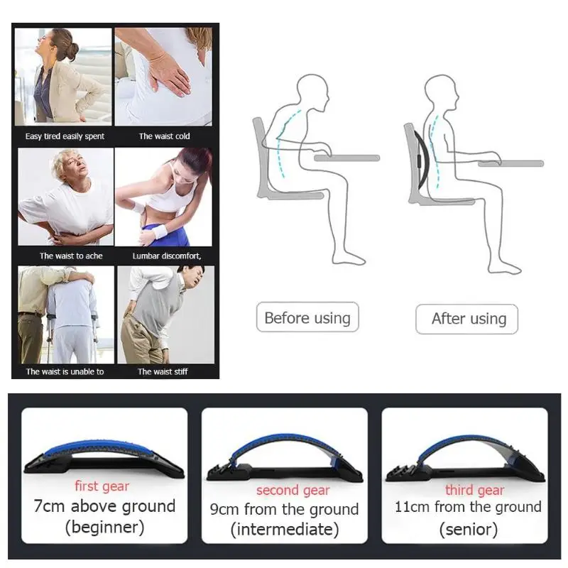 You can use it while sitting, help you to correcting your sitting posture and massage your lumbar spine.