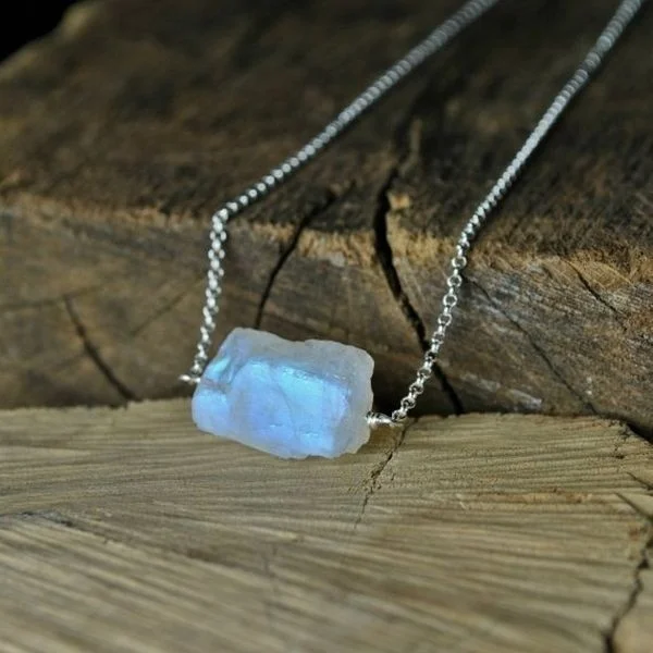 Радужное ожерелье лунный камень, серебро 925 пробы, ожерелье с необработанными кристаллами, ювелирные изделия из лунного камня,