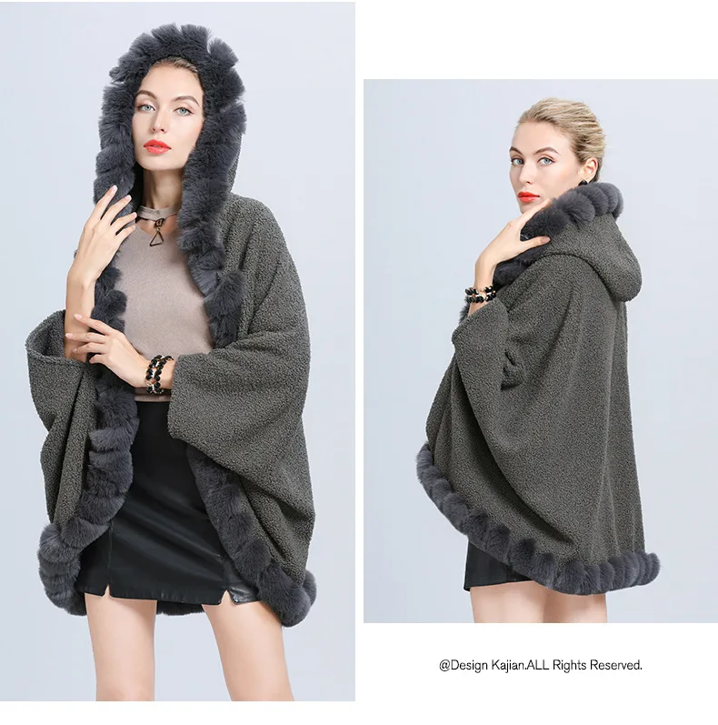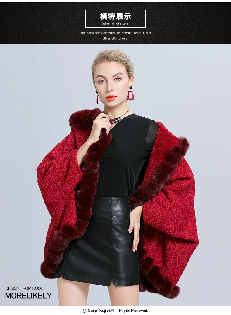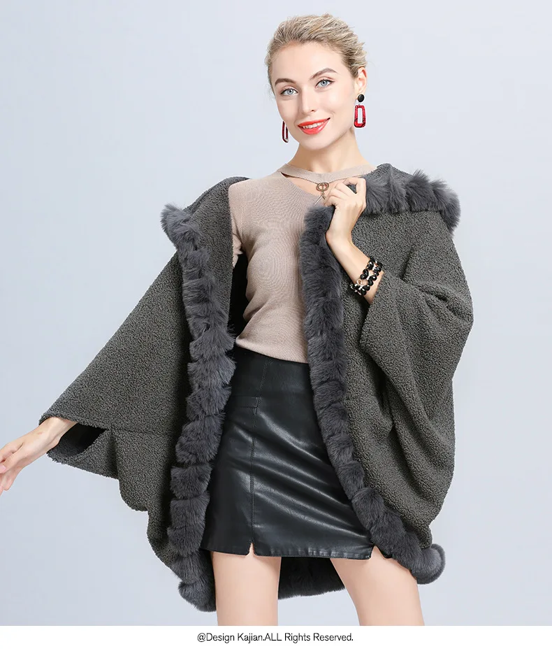 Новый Зимний теплый толстый пушистый меховой гранулированный бархатный шаль 2020 Женская Повседневная Свободная шерстяная накидка из искусственного лисьего меха кардиган накидка пальто