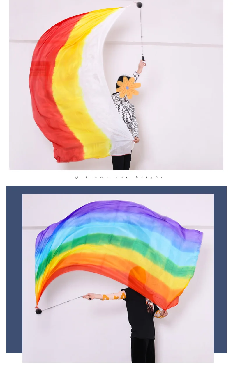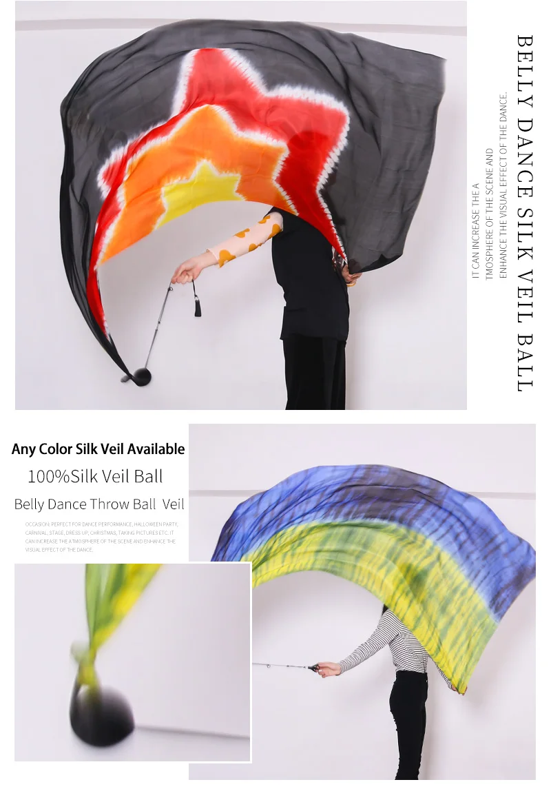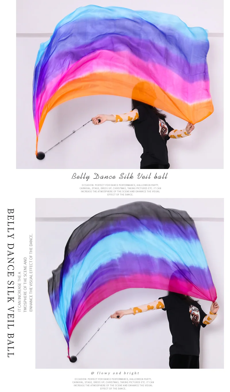 Шелковая вуаль для танца живота, 250x114 см, пои, цепочка, помпон, Женский стример, реквизит для сцены, Радужный цвет, градиентный аксессуар