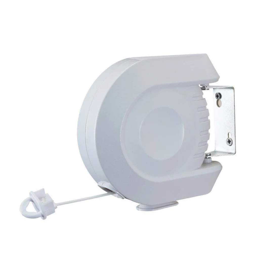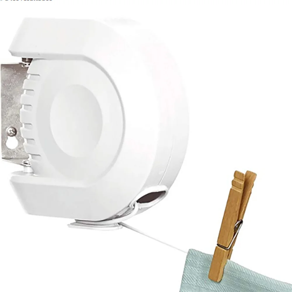 Установите пластиковый корпус на стену с помощью винтов и потяните веревку любой длины, которую вы хотите, и завяжите конец крючка. Вычтите линию после использования, чтобы сэкономить место.