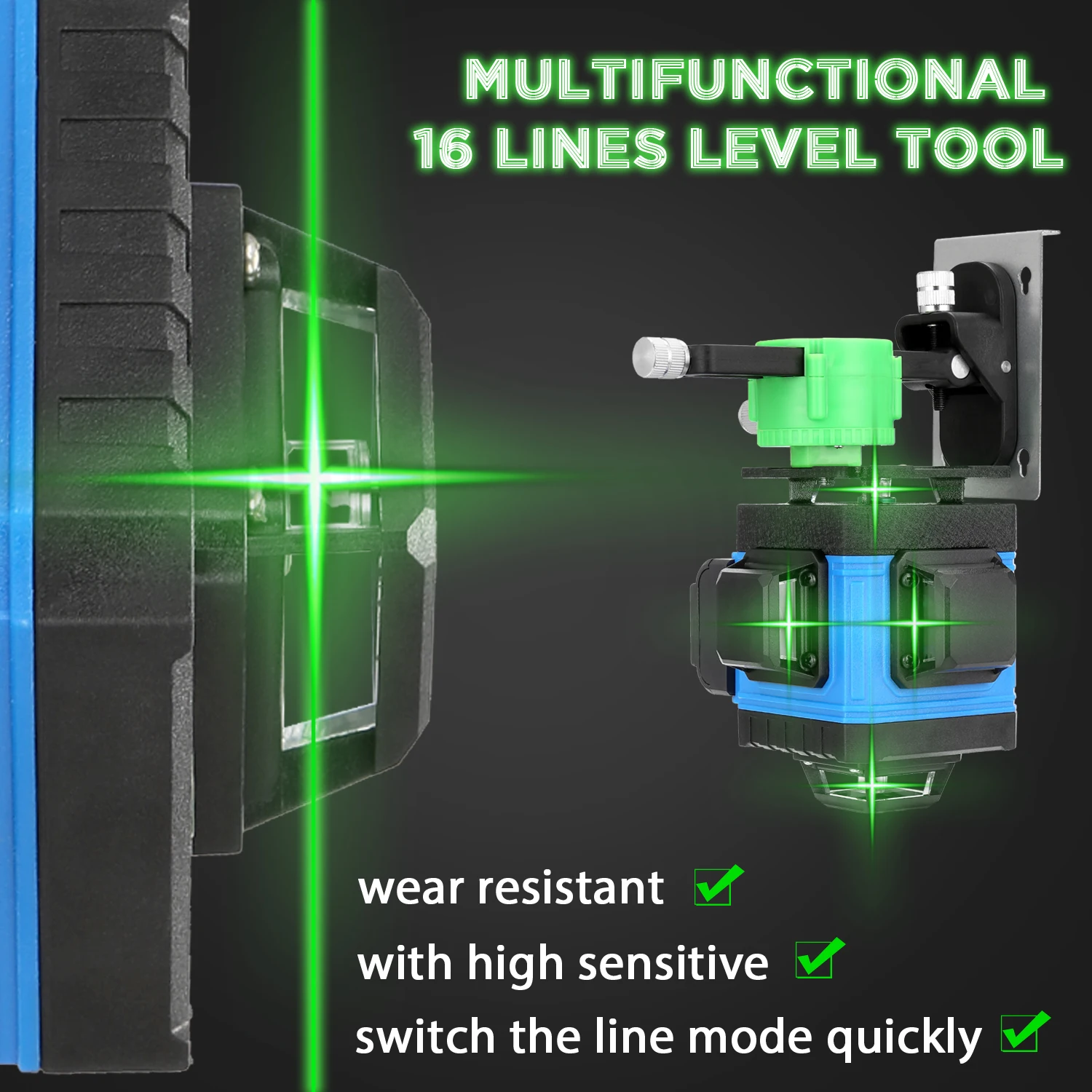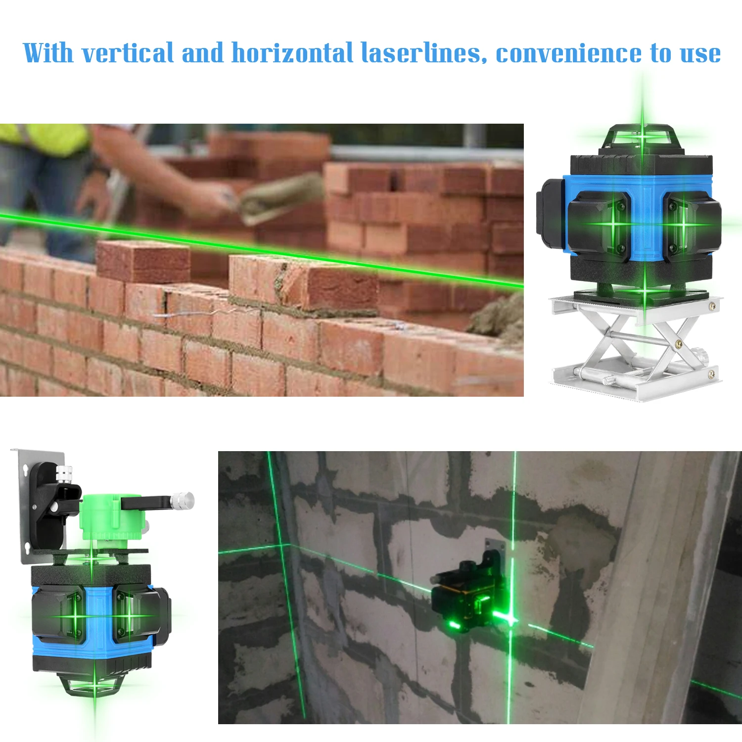 Это своего рода инструмент высокого качества, 4D 16 линий для более точного позиционирования, с самонивелирующейся системой, гибкостью и стабильностью. С вертикальными и горизонтальными лазерными линиями, удобство в использовании. Идеально подходит для различных видов применения, включая напольное покрытие, плитку, обшивку, обшивку стен, обшивку стенок, обшивку, отделку столярных изделий, розетку и раскладку переключателей, обшивку стен и установку перегородок. Вы можете попробовать.