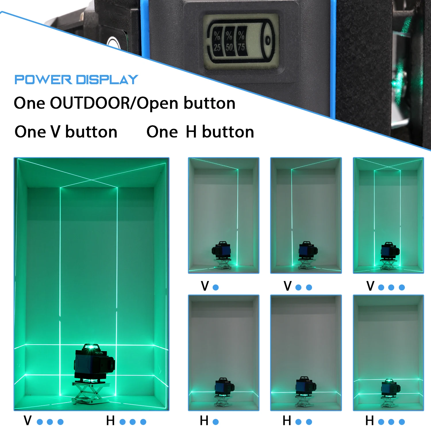 Функция самонивелирования может завоевать маленькое прочное место, например, 3 °, более 3 ° лазерный светильник будет мигать, чтобы напомнить вам о том, чтобы положить его на плоское место.