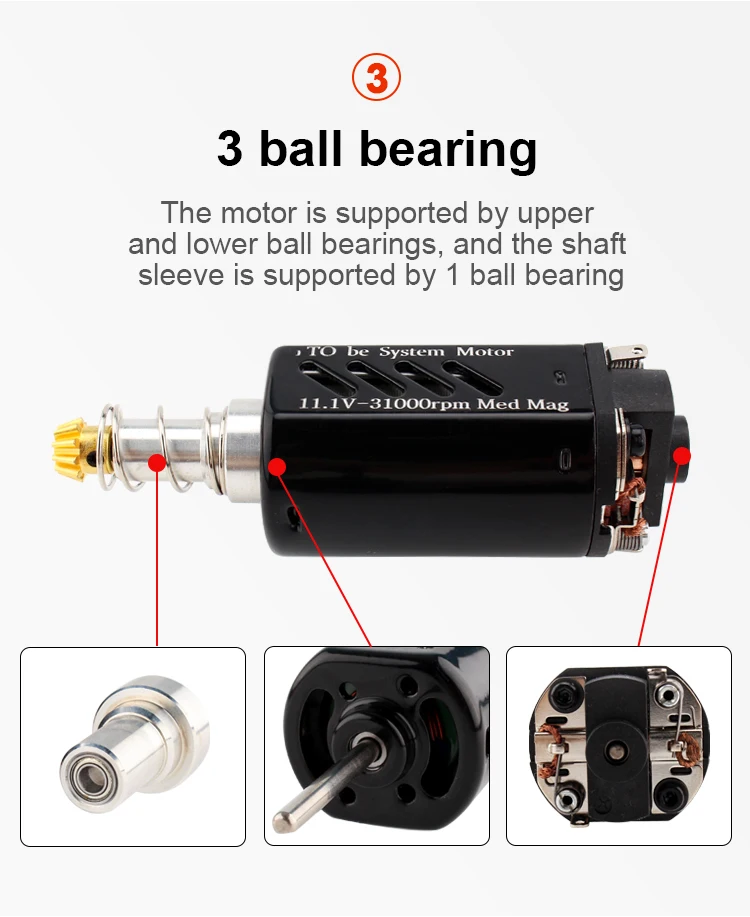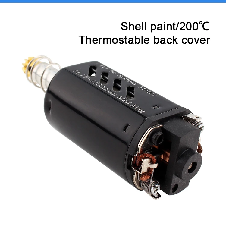 Тип товара: CHIHAI мотор CHF-480VA-7019T длинный вал Высокая скорость AEG длинная ось двигателя для M4A1-J10 ACR-J10 геля бластер игрушка Магнитные материалы: скрепленный Магнит Nd-Fe-B DC11.1V: скорость 31000 об/мин Вес: около 147 г Характеристика: 1. Термостойкие, высокопроизводительные магниты 2. Высокопроводящая моторная щетка 3. Усиленный вал двигателя Применение Длинный тип для M4, M16, MP5, G3, M14 и P90 AEG. Новая ультра изготовленная на заказ серия от двигателя ChiHai Magnum мотор с высоким крутящим моментом/Ультра изготовленный на заказ мотор является дизайном для сверхмощного модернизированного страйкбола AEG. Подходит для серии G & P, M14, DMR, MK14 Crane Proto Conversion Kit.
