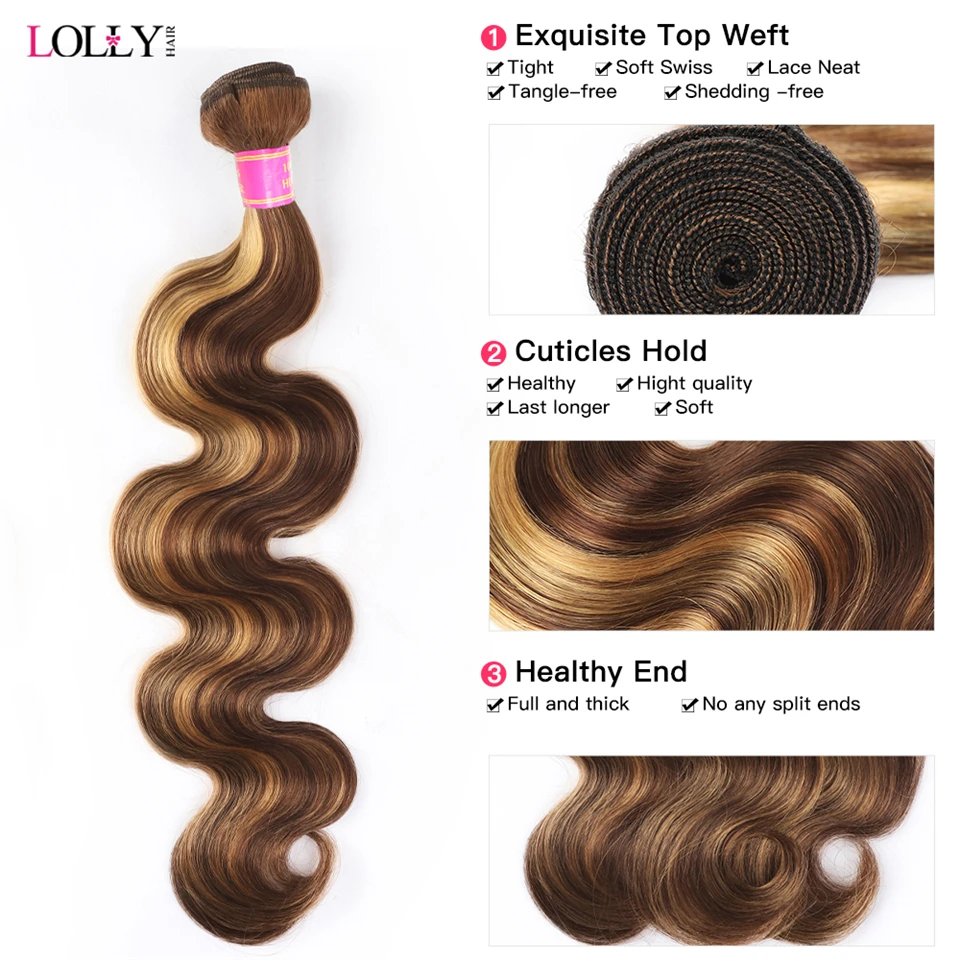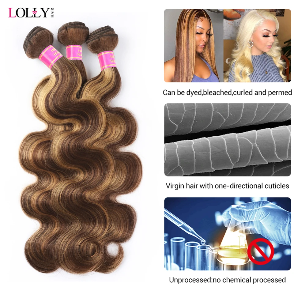 Выделите объемные волнистые пучки с закрытием P4/27 человеческие волосы пучки с закрытием бразильские волосы плетение пучков с закрытием шнурка