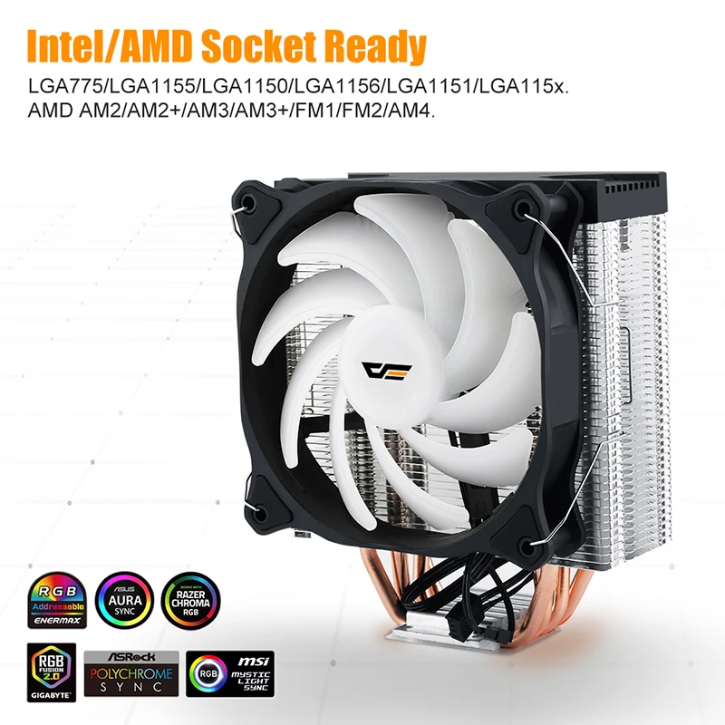 Более подробная информация Эффективный рассеивающий медный спеченный порошковый тепловые трубки обеспечивает высокую эффективность тепла, 2,5 мм плавник высокой проходимости башенный радиатор рассеивает тепло с низкой скоростью и шума вентилятора. RGB свет со стильным синхронизированным rgb-алюминиевым корпусом и вентилятором обеспечивают потрясающее освещение. Дружественная установка 125X125X25mm PWM светодиодный бесшумный вентилятор отсоединяется при необходимости очистки. Простая и удобная установка в системе Intel и AMD без перемещения материнской платы. Широкое применение ЦП Intel/AMD TDP 180 Вт. LGA775/LGA1155/LGA1150/LGA1156/LGA1151/LGA115x. Разъем 754/939/940/AM2/AM2 +/AM3/AM3 +/FM1/FM2/AM4. В комплект входит: 1 * Модуль Aigo darkair; 1 * вентилятор; 1 * Пряжка AMD; 1 * Intel PBT Пряжка; 1 * консистентная смазка с подогревом 2 * пряжки линии; 4 * нажимные штифты; 4 * Intel пряжки;