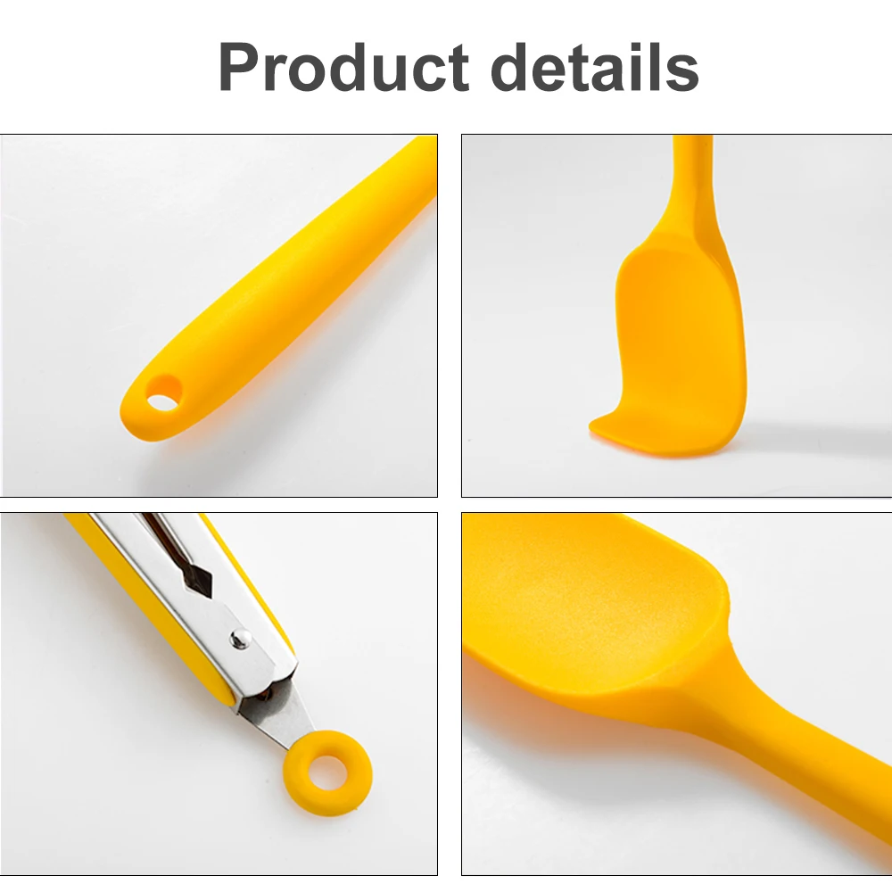 В комплект входят: Тонг, венчик, щетка для протирания, шлицевая ложка, шлицевая Тернер, ложка, шпатель, шпатель, твердый Тернер, суповый ковш