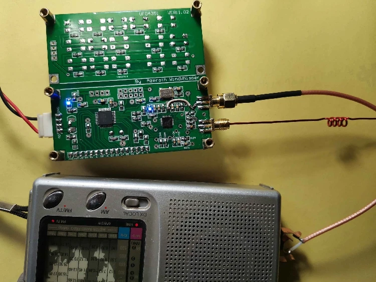 Используйте самодельный простой источник сигнала ADF4351 (источник VFO) для вывода 1000 МГц и Смешайте с локальным fm-сигналом 100,3 МГц, полученным внешней антенной, В соответствии с тригонометрической функциональной интеграцией и формулой разницы