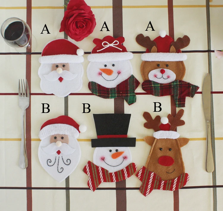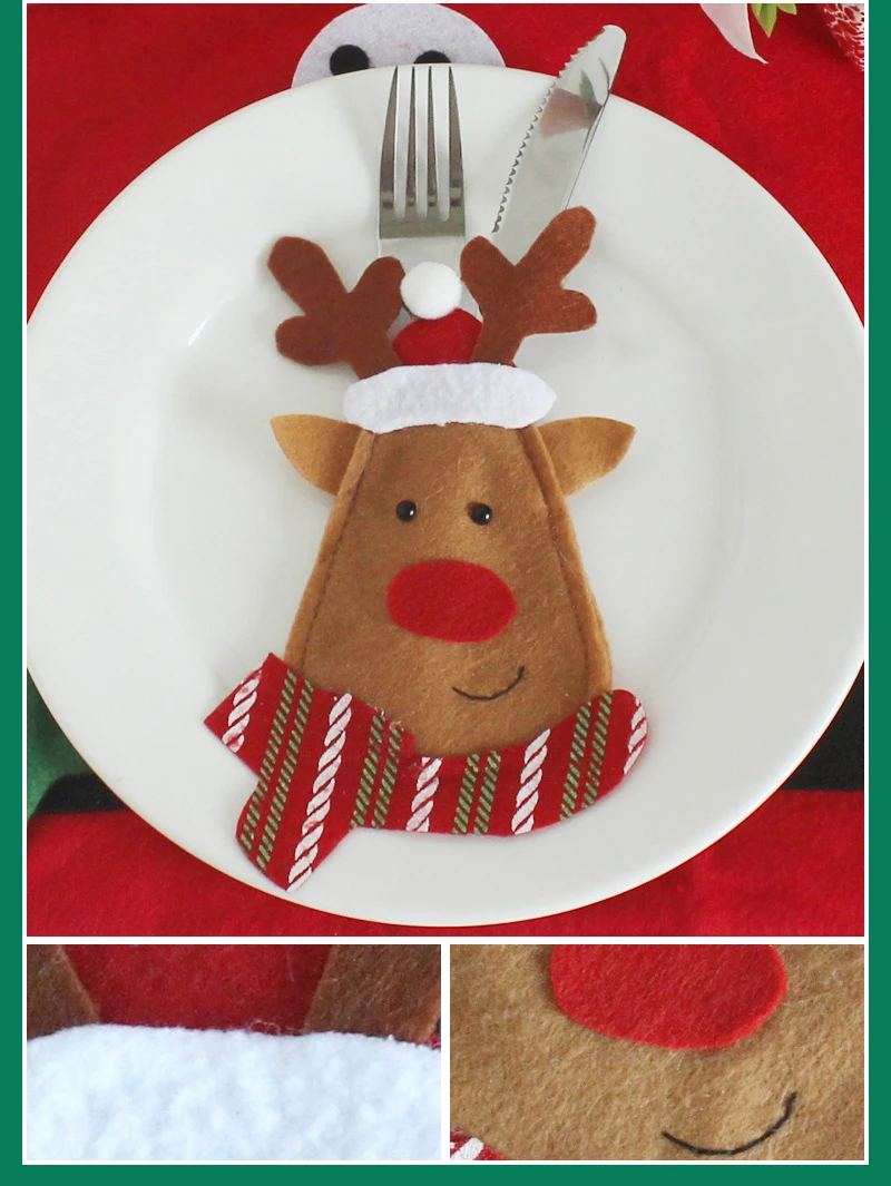3 шт. милое Рождественское украшение сумка для посуды Украшение Стола Санта-Клаус Снеговик Лось держатель кухонной посуды карман для кухонных приборов сумка для посуды набор