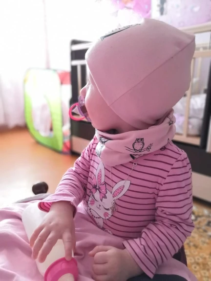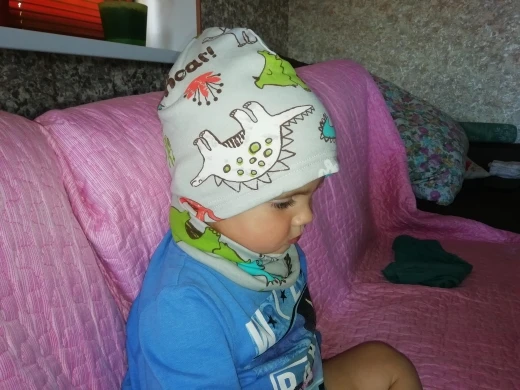 СиZe M: высота шапки: 18 см, ширина: 20 см, подходит для детей от 3 месяцев до 3 лет, для головы до 50 см