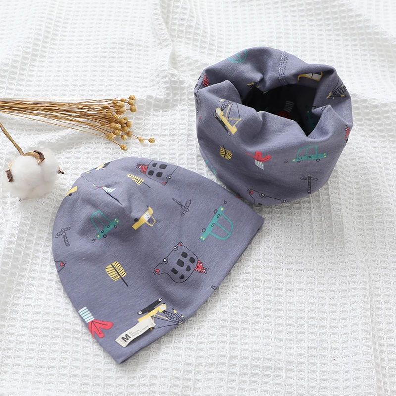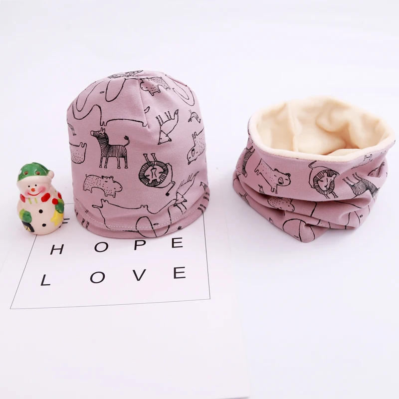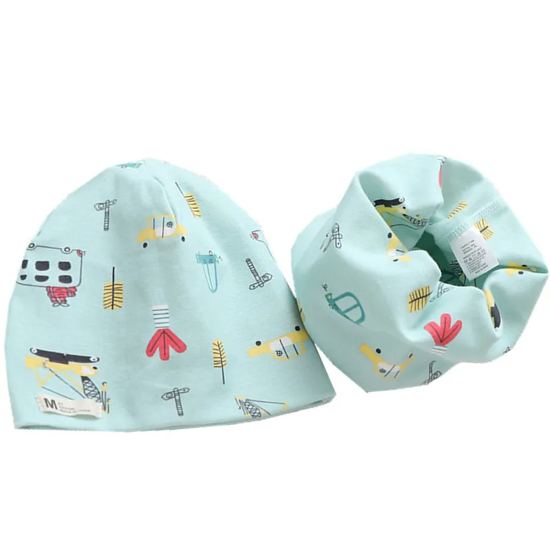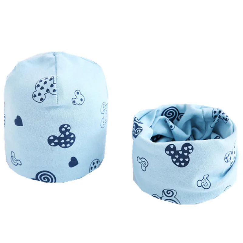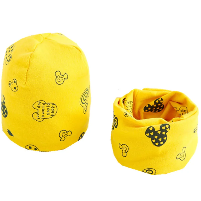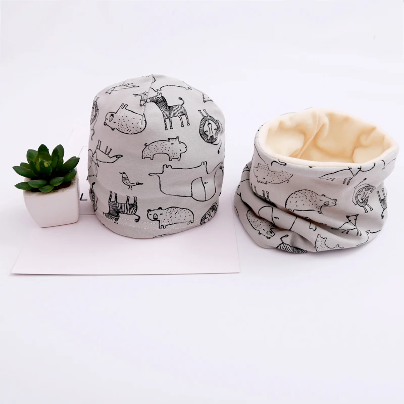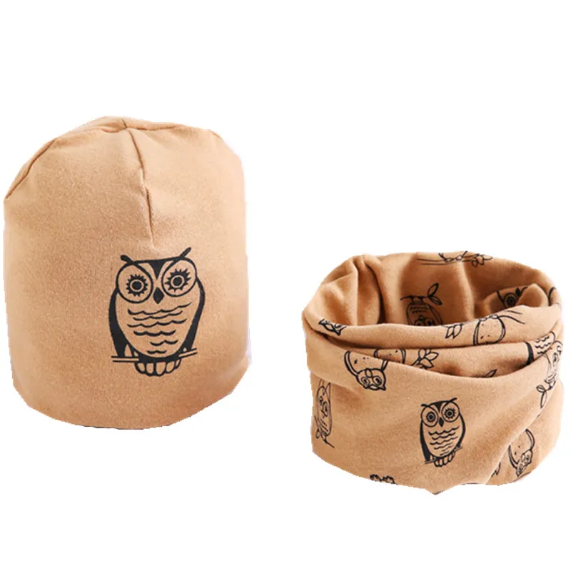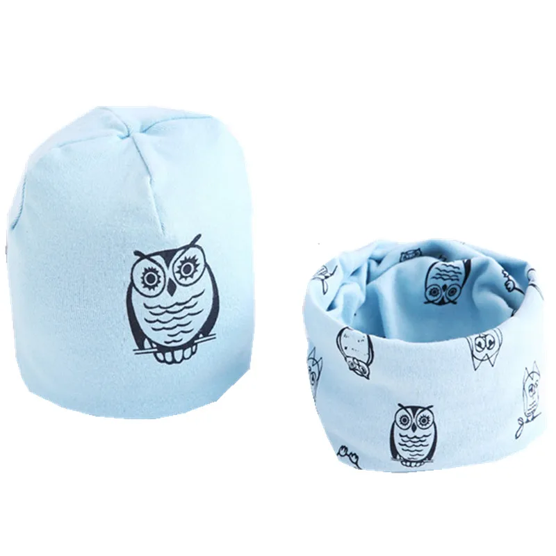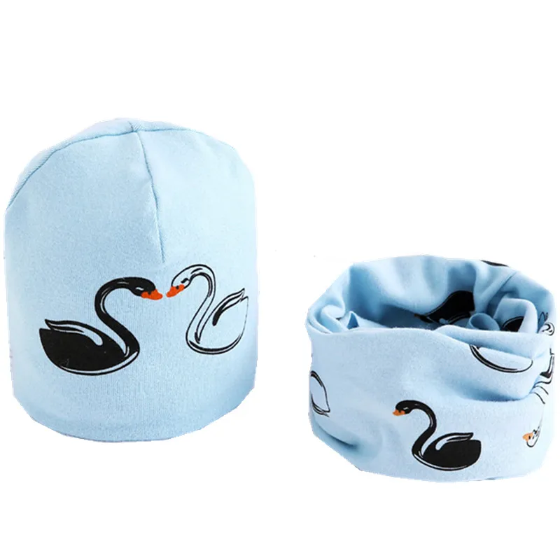 Новая весенне-Осенняя шапка для девочек, шарф, комплект с рисунком совы, звезды, лебедя, шапка для маленьких мальчиков и девочек, детская шапка, шарф-воротник, хлопковый Детский комплект шапки