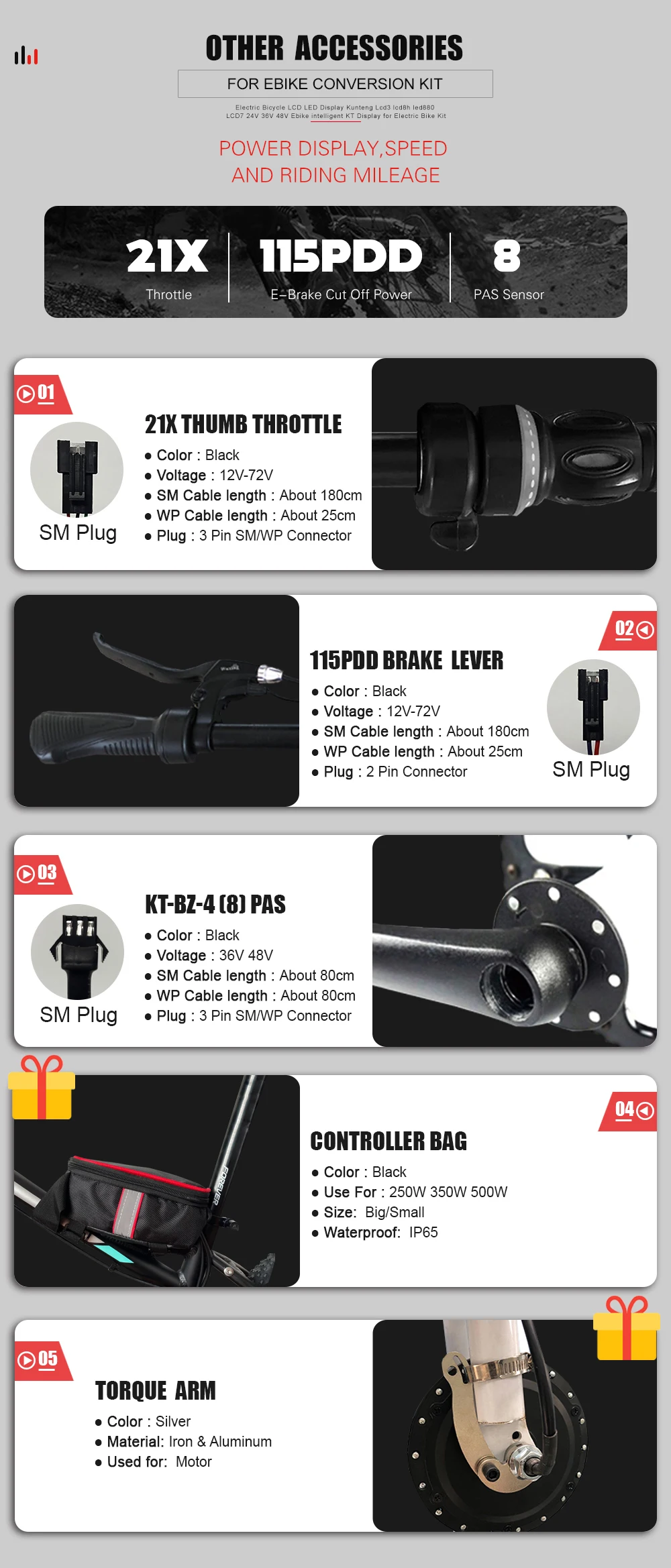Подарки: 1 * сумка контроллера (не батарея) + 1 * дисковый тормоз + 1 * рычаг крутящего момента + 1 * установить кабельные стяжки и стрейч-пленку + 1 * Руководство по установке