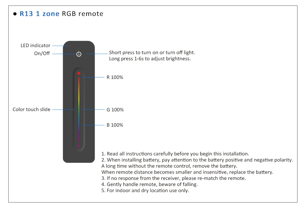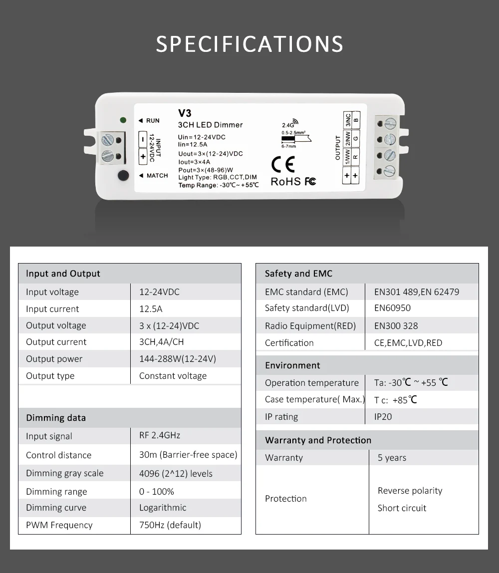 ● Совместимость с одной зоной 2,4G или несколькими зонами одного цвета, двух цветов и пультом дистанционного управления RGB.