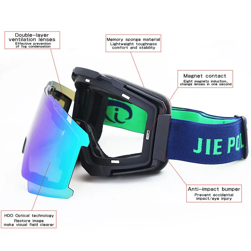 Магнитные высокой четкости противотуманные лыжные очки зимние снегоходные очки Спорт на открытом воздухе UV400 катание лыжные очки