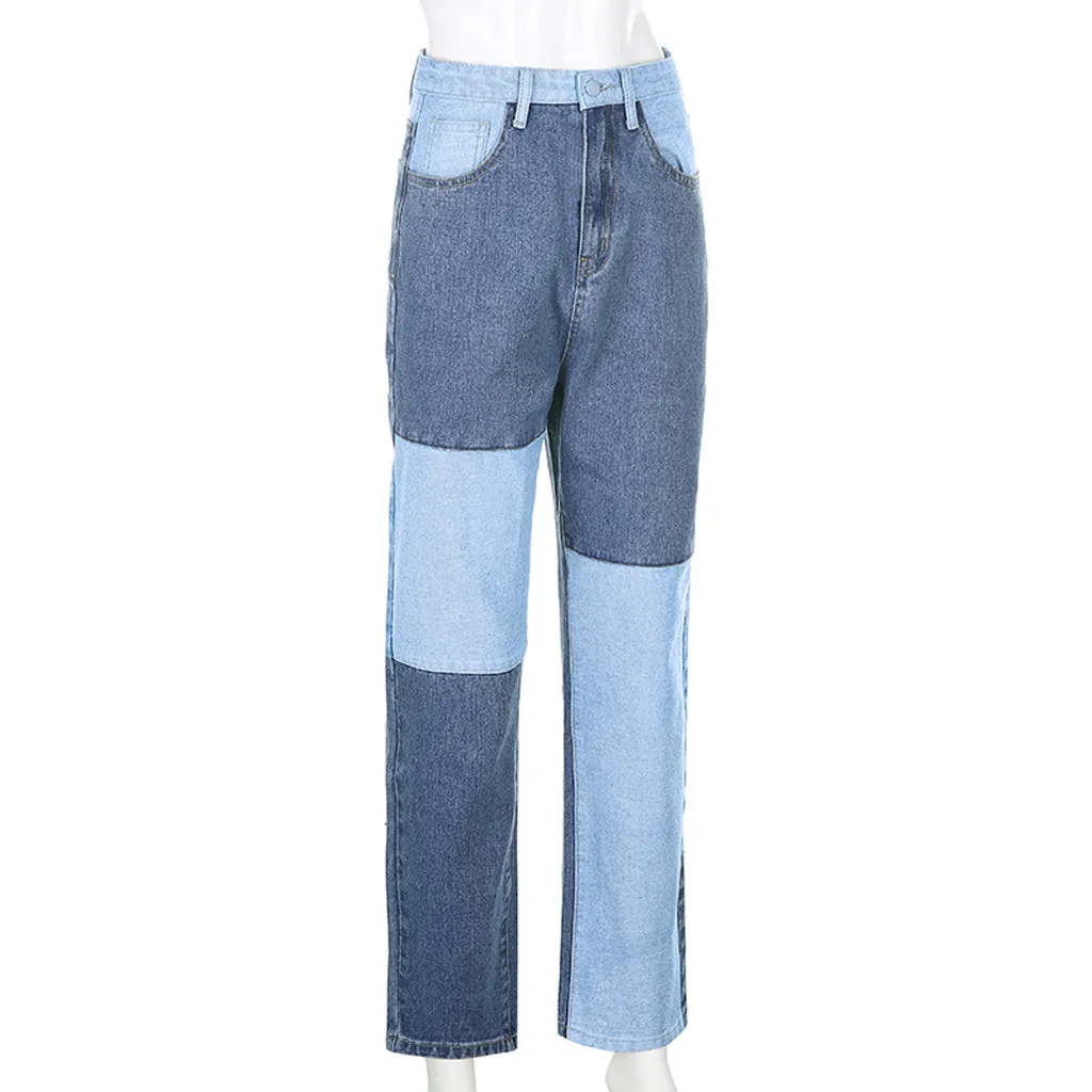 Женские модные повседневные облегающие джинсы с цветными блоками
