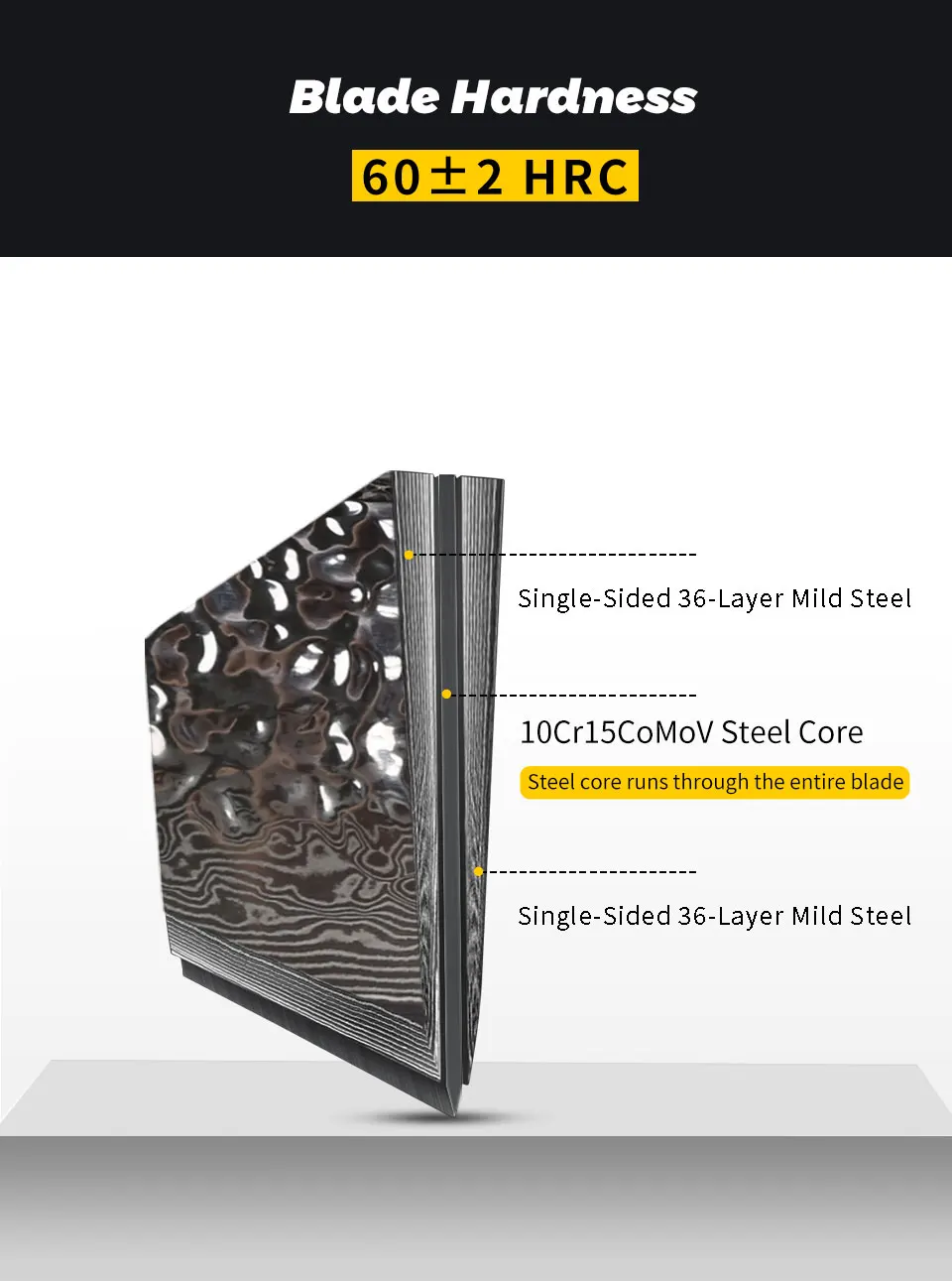 2. Твердость лезвия:60 ± 2 HRC