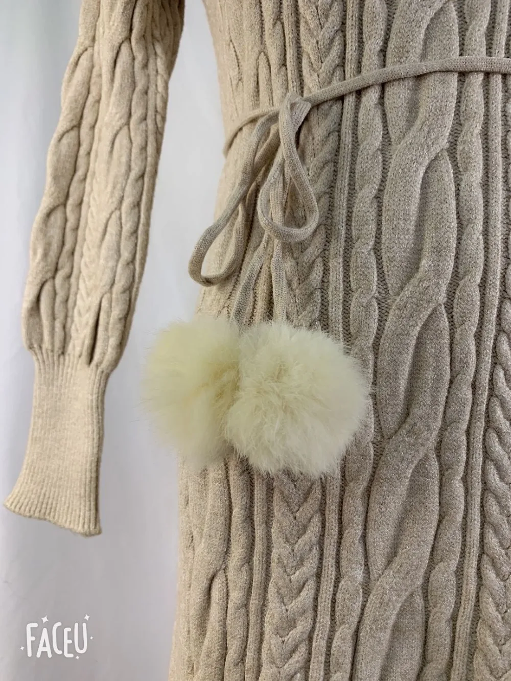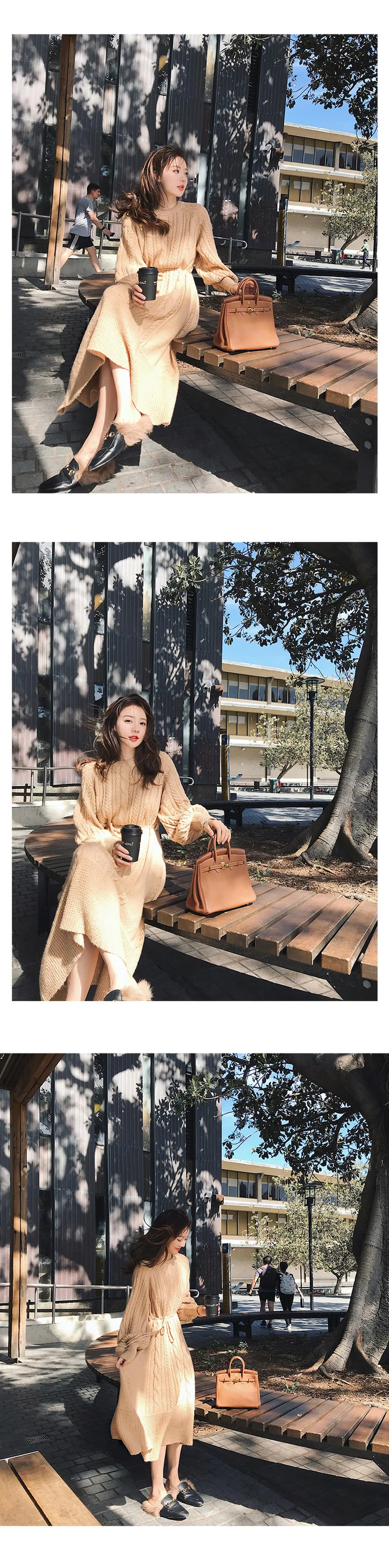 Женское трикотажное платье с длинным рукавом поясом и плиссированной юбкой в
