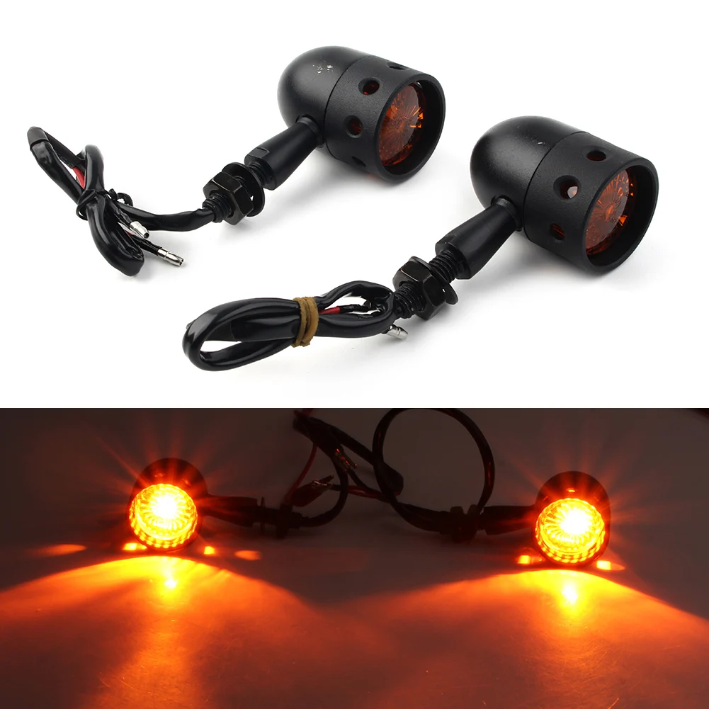 2x черный ретро мотоцикл поворотники пуля янтарный индикатор огни универсальные