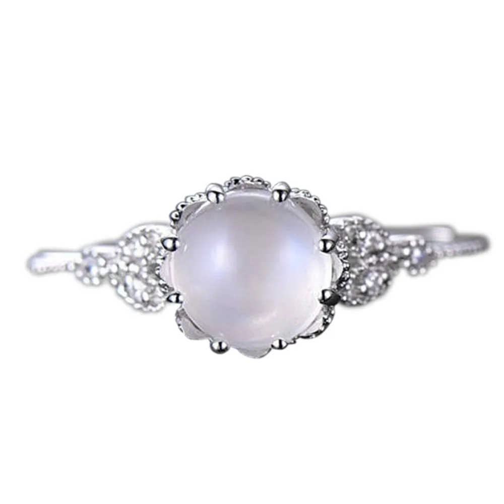 Стильное кольцо для помолвки с лунным камнем и инкрустированным бриллиантом