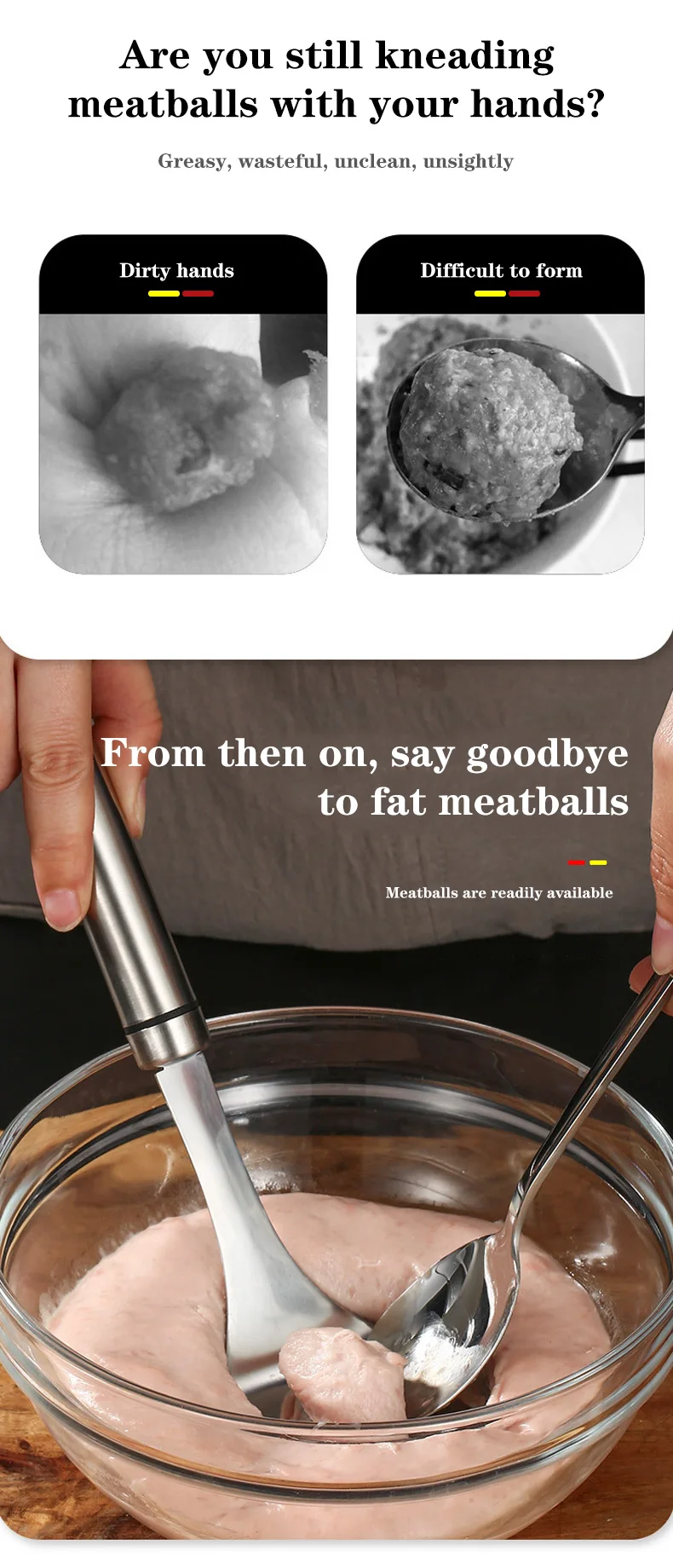 При нажатии ложки могут образовываться фрикадельки, легко и без усилий не окрашивать руки.