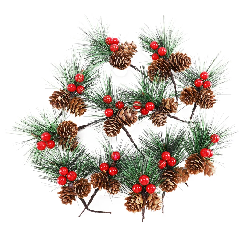 LBER 12 шт. искусственный сосновый выбор мини рождественские красные ягоды сосновые шишки Свадебный сад Рождественская елка наполнитель украшения