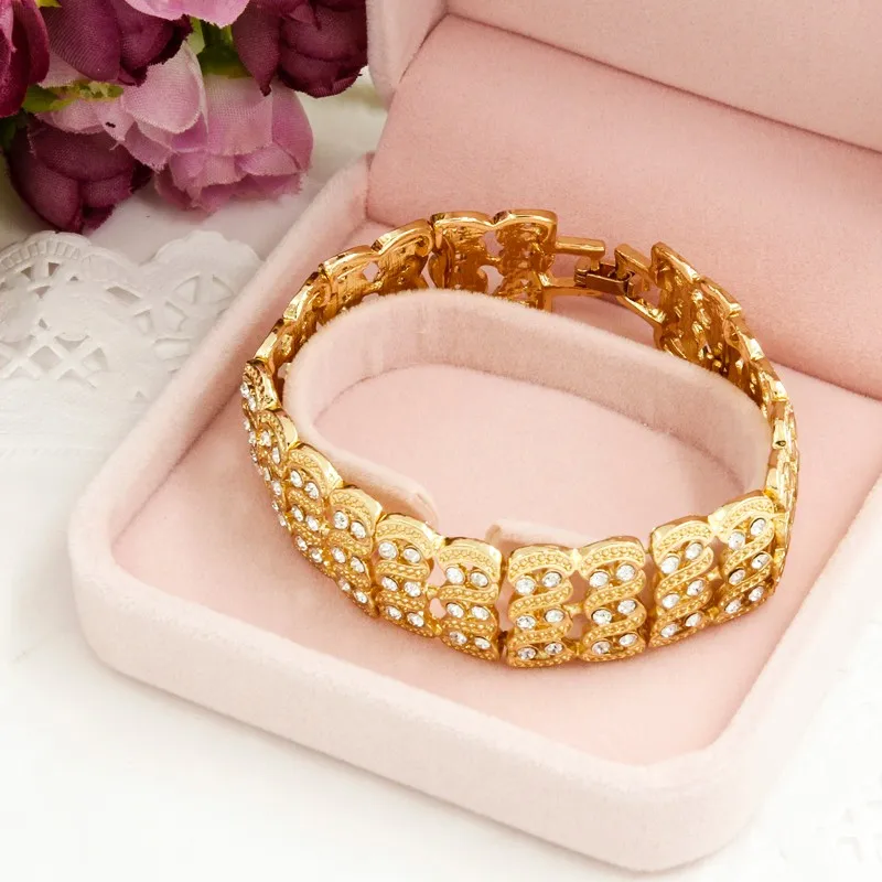 Ожерелье, браслет, серьги, кольцо. Цвет: Позолота 18 к. Процесс: вторичное покрытие. (Сохраняет цвет дольше) Срок годности: 12-20 месяцев На 100% абсолютно новый качества/Высокое качество Стиль: модный. Повод: помолвка/Юбилей/вечерние/подарок. Методы продаж: Розничная торговля, оптовая торговля, изготовление на заказ. Подходит для свадебных платьев, платьев и повседневной носки. Примечание: Не прикасайтесь к воде, поту, косметике и т. д.