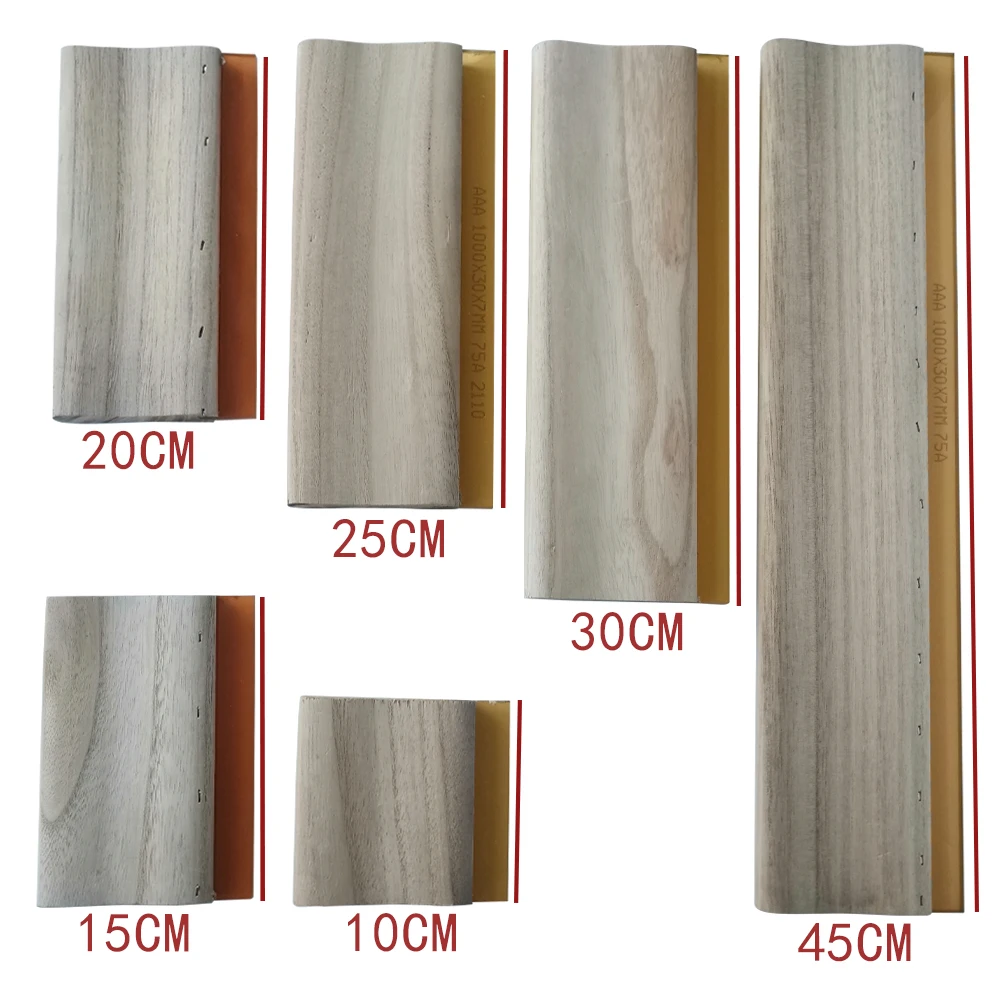 Ракель изготовлен из комбинации когтеточки и ручки, резиновое лезвие вставляется в деревянную ручку и скреплено в положение, затем профессионально заточено после сборки. Используется как для графического, так и для текстильного применения, для ручной печати и многих машинных применений.