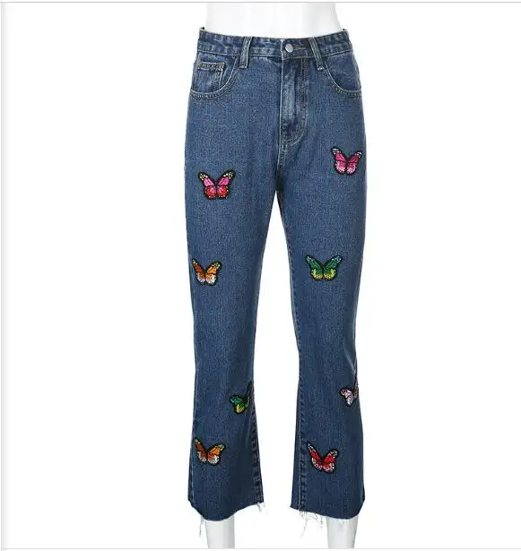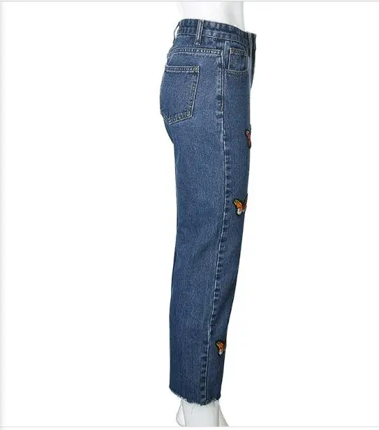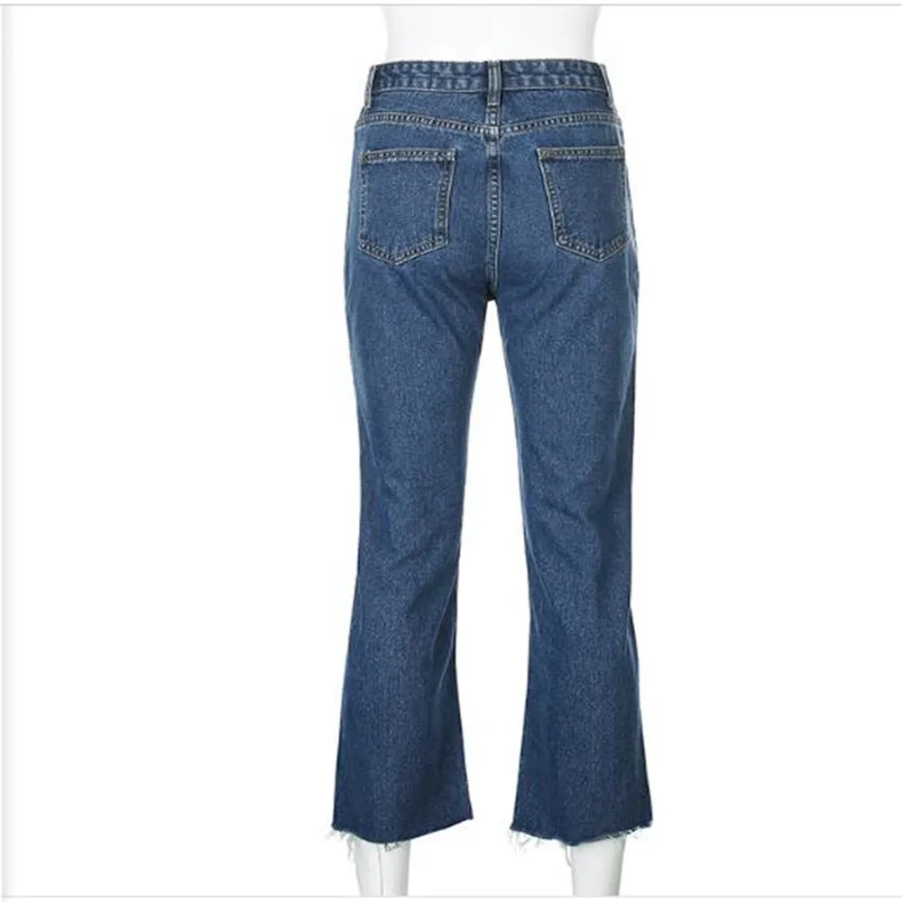 Женские прямые джинсы-бойфренды джинсовые брюки полной длины со средней талией и