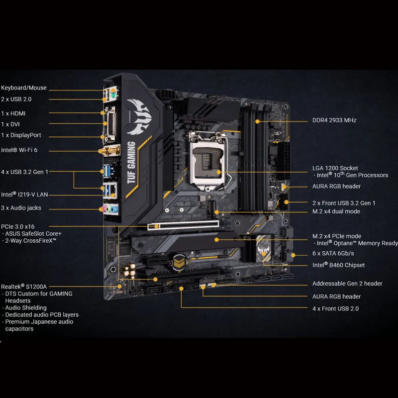 Материнские платы Asus TUF GAMING B460M-PLUS WIFI Материнская плата LGA 1200 10-го поколения Core/Pentium/Celeron DDR4 M.2 PC Micro ATX New