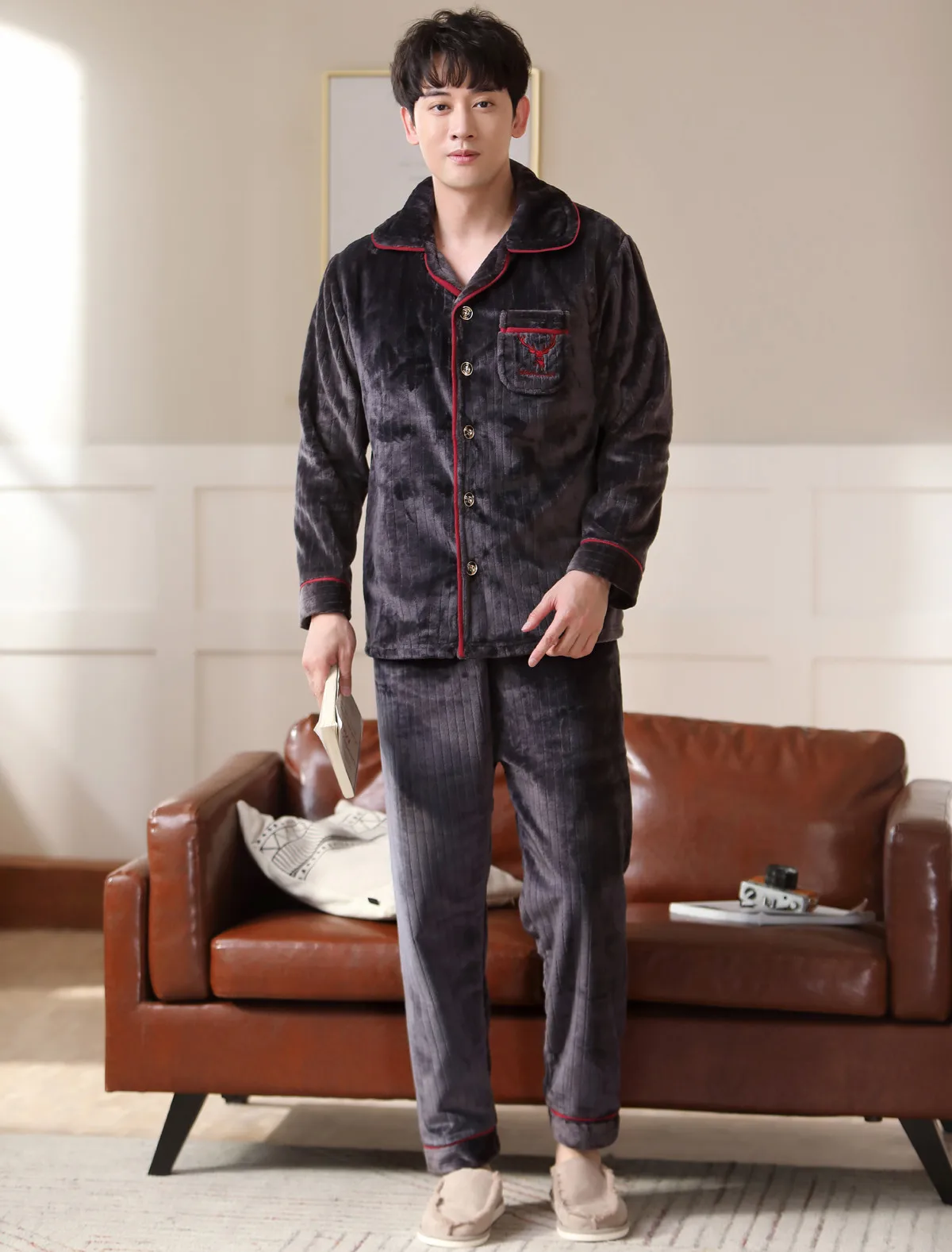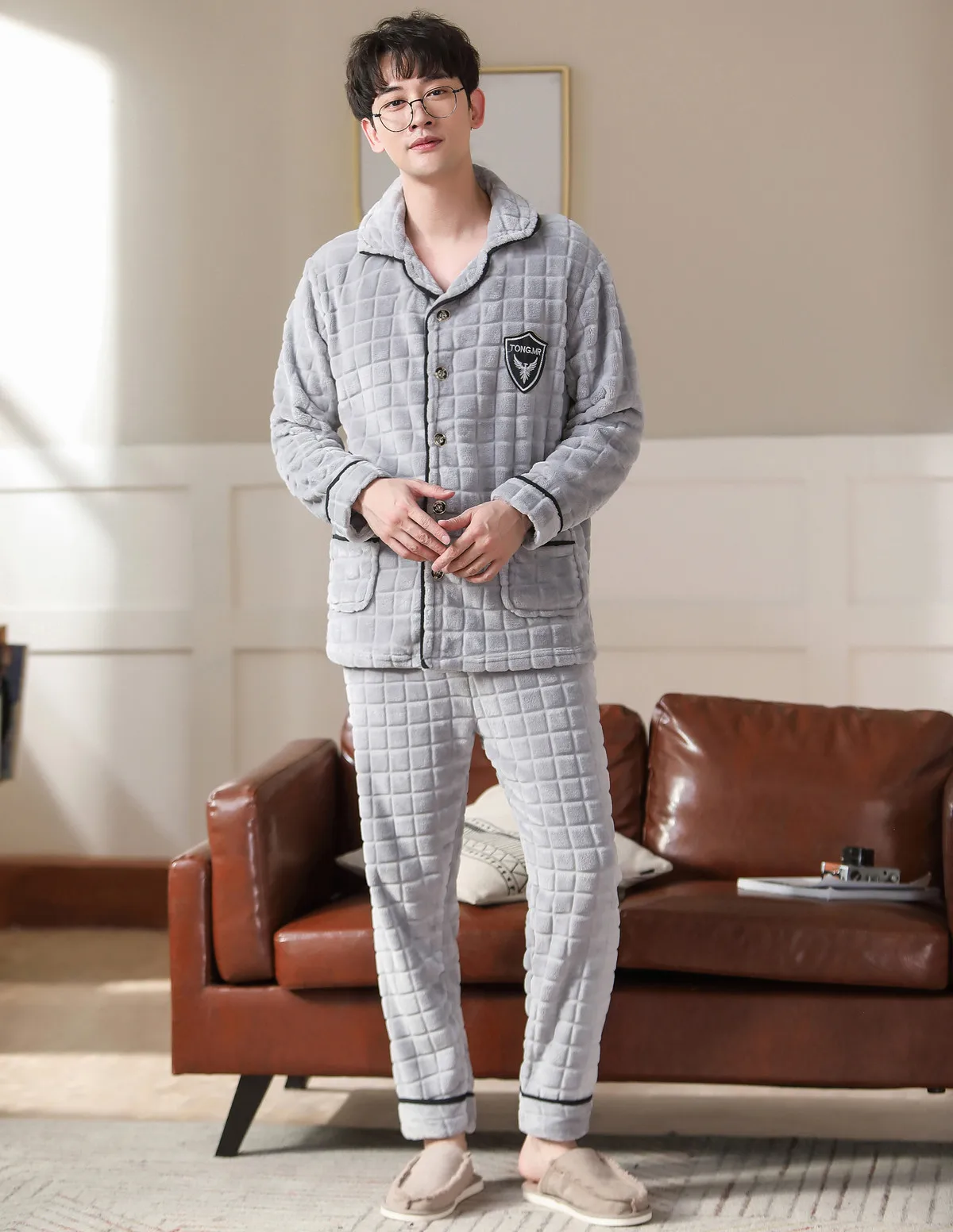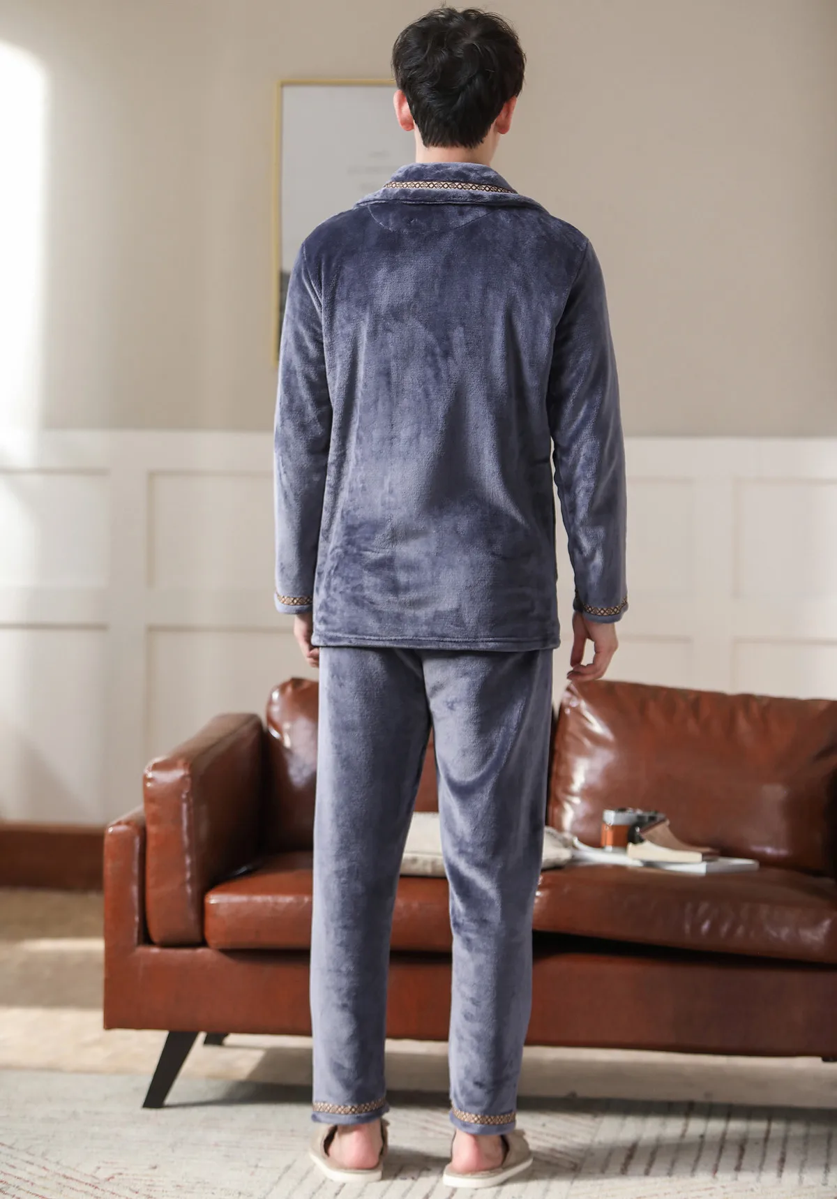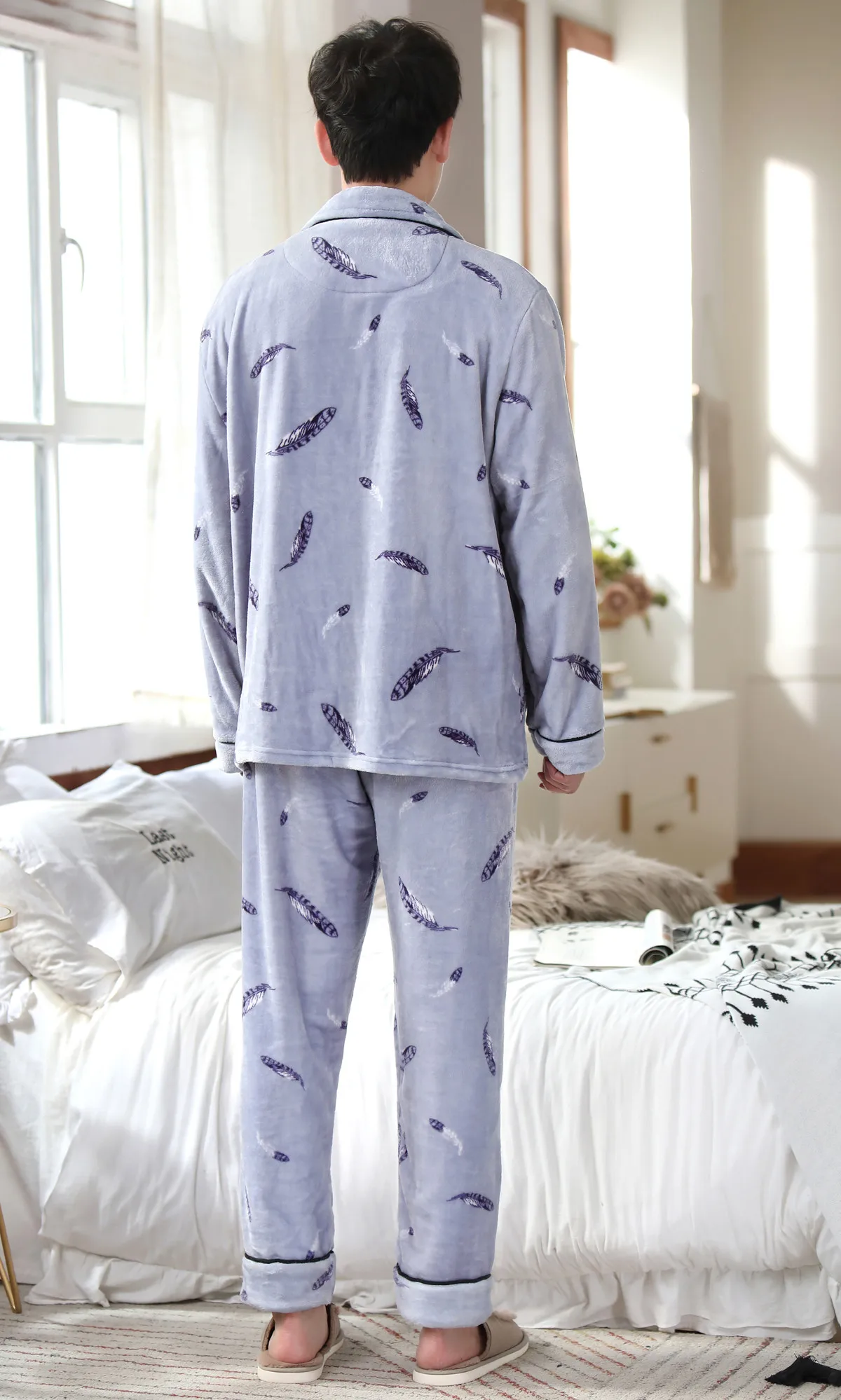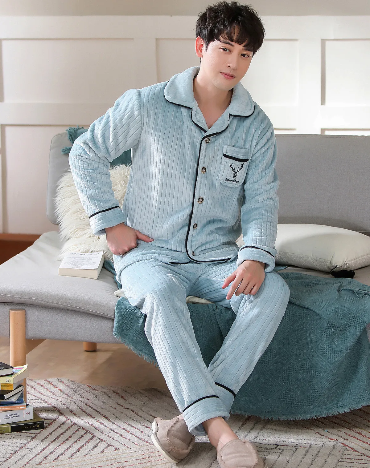 Пижамный комплект мужской зимний трехслойный стеганый фланелевый утепленный