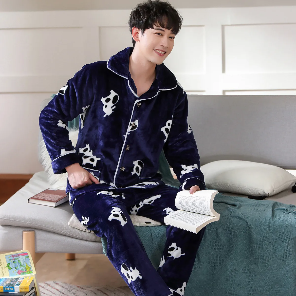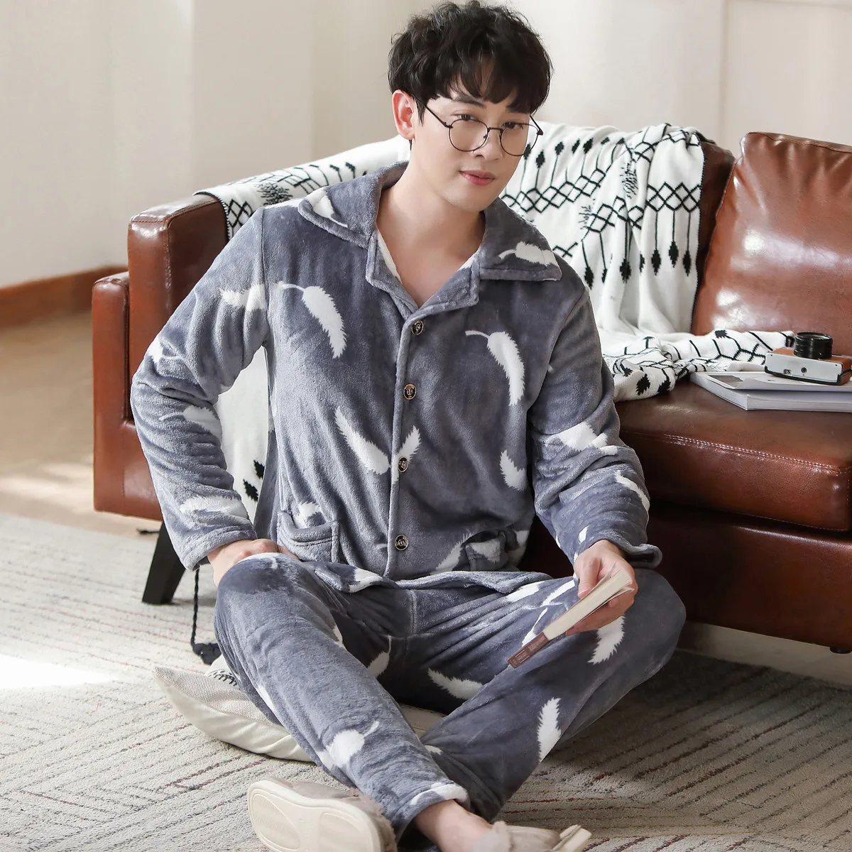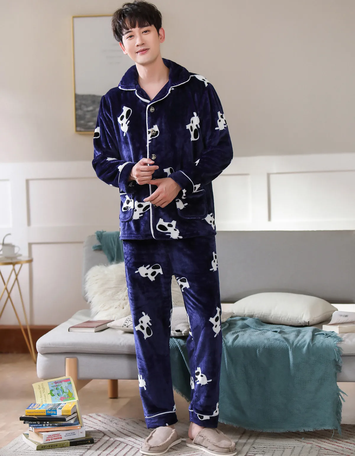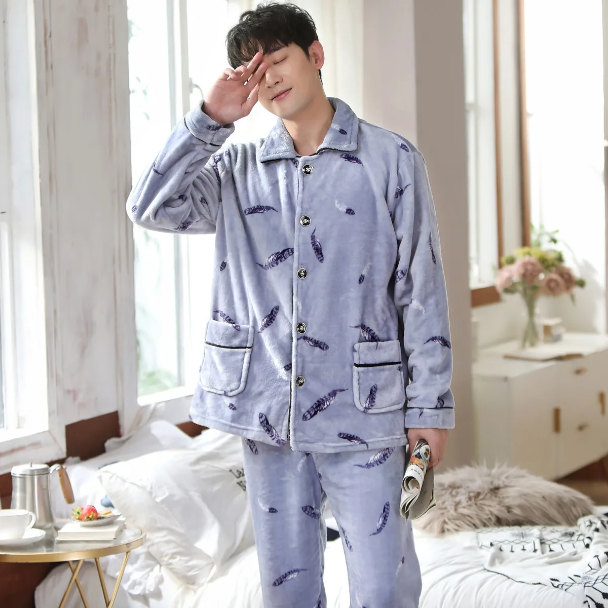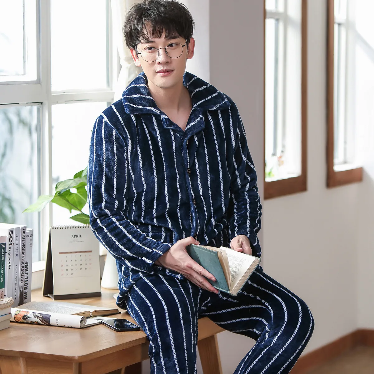 Пижамный комплект мужской зимний трехслойный стеганый фланелевый утепленный
