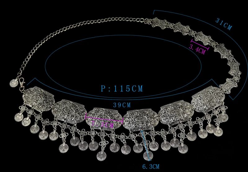 Размеры:Цепочка на талии-115 см, кулон 7,3 см + 6,3 см