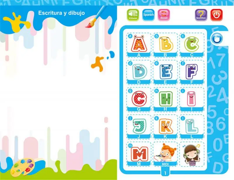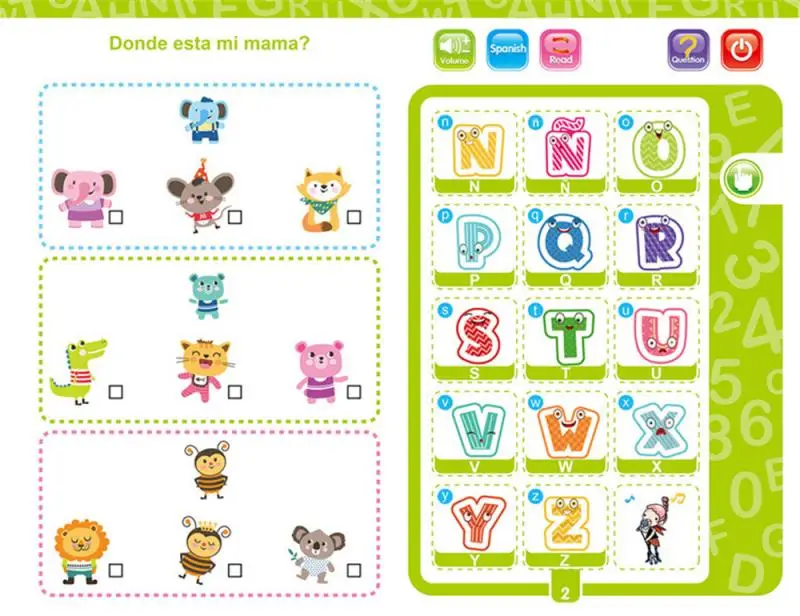 1: он также может помочь вашему ребенку выучить испанский, английский, заклинание и сочетать слова с картинками и математикой.
