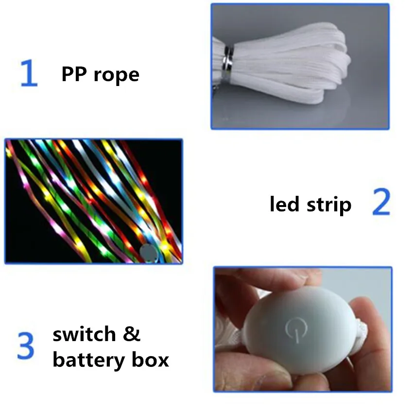 Батарея: каждый шнурок оснащен 2 батареями CR2032, время использования около 30-60 часов