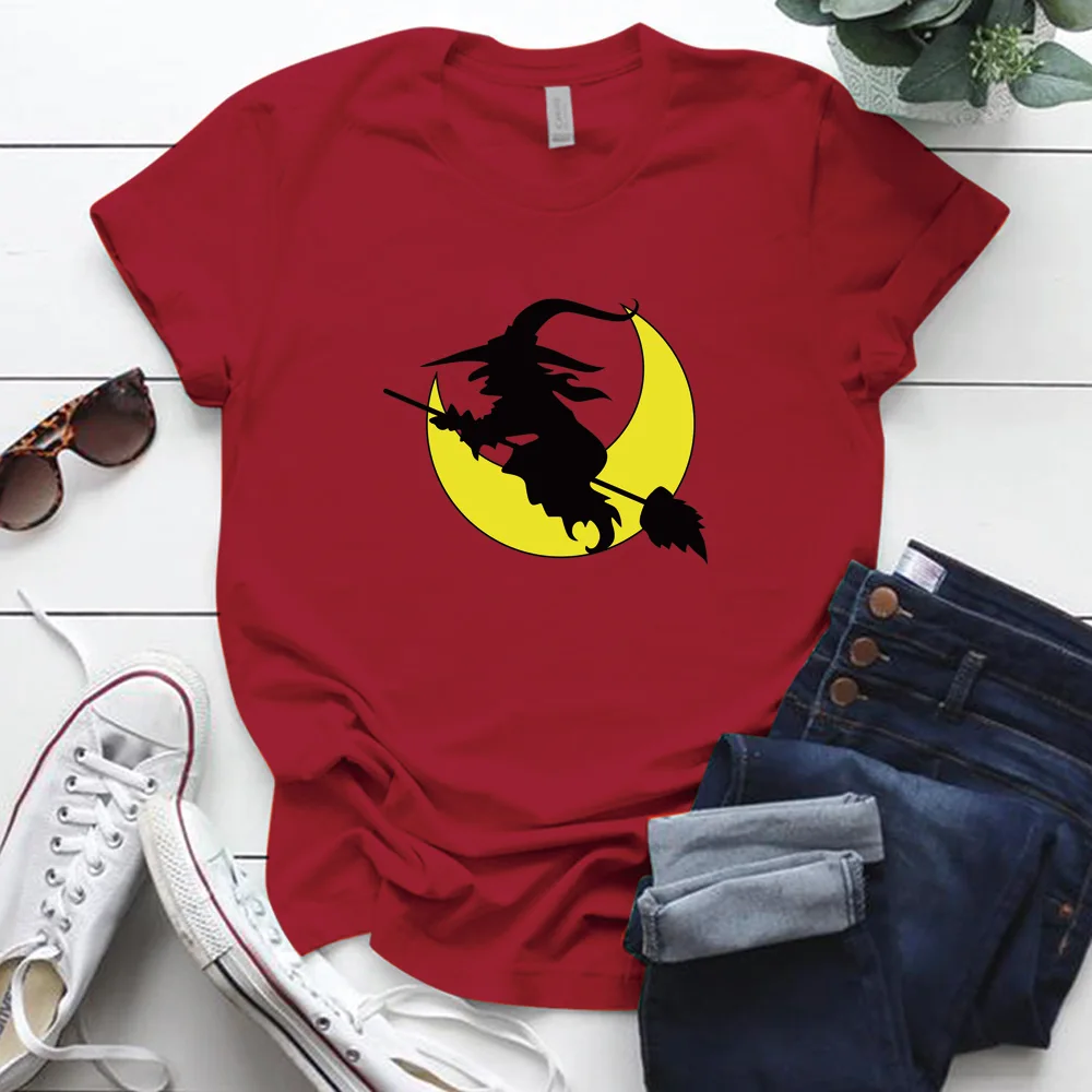 Футболки на Хеллоуин с принтом ведьмы на палочке, женская футболка в стиле Харадзюку, праздничные топы размера плюс S-5xl для женщин