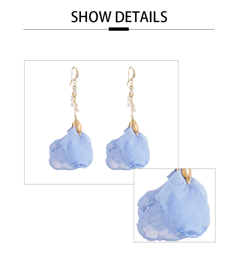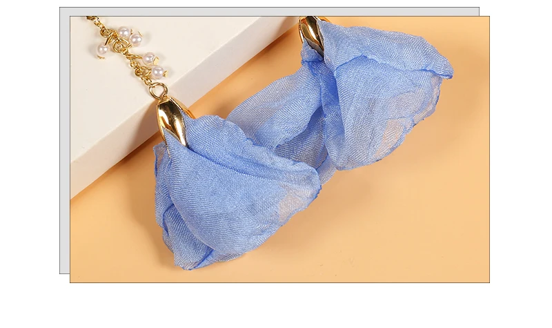 Elegance11 Women Long Flower Earrings Silk Pendant Earrings Pearl Tassel Jewelry Colorful Open Accessories Gifts for Girls