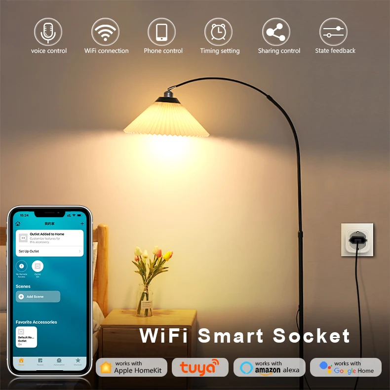 Голосовое управление: отсканируйте код HomeKit, чтобы установить смарт-разъем, который работает с Apple Homekit, или загрузите приложение Tuya или smart Life, чтобы установить его, который работает с Amazon Alexa и Google Home Assistant. Наслаждайтесь свободными руками удобством управления любыми бытовыми электронными приборами с помощью своего голоса через Apple Homekit Siri ,Amazon Alexa и Google Assistant.