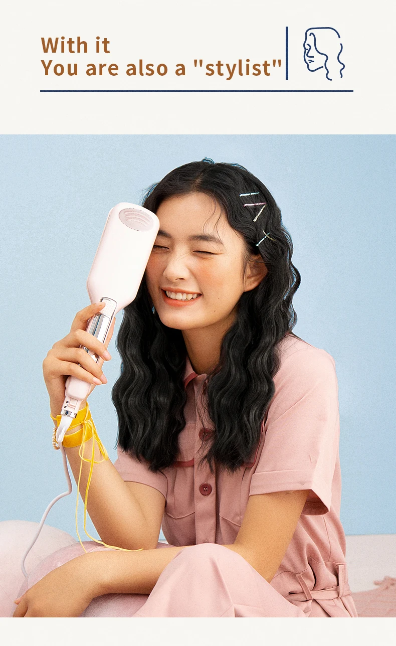 1. Запуск и установка соответствующей температуры. Дважды нажмите кнопку переключателя, чтобы зафиксировать его. Дисплей сообщит о температуре в режиме реального времени Двойной щелчок для блокировки Отображение температуры в реальном времени 2. Поместите прядь волос в шину и Подержите 5-8 секунд 3. Выровняйте верхний край палочки для завивки к хвосту предыдущей волны и повторите вниз до конца волос