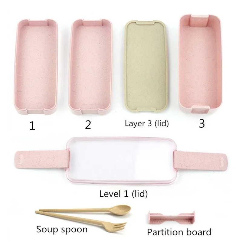 100% Новинка и высокое качество Легко носить с собой Здоровый и экологически чистый Гибкая конструкция уплотнения замка Можно поставить в микроволновую печь для нагрева Технические характеристики: Материал: пшеничная солома, пищевой пластик PP (крышка) Размер ланч-бокса: 18,6 см * 8,2 см * 11,2 см, емкость: 900 мл Размер суповой чашки: 10,5 × 9 × 12,5 см, Емкость: 600 мл Цвет: зеленый, розовый, бежевый